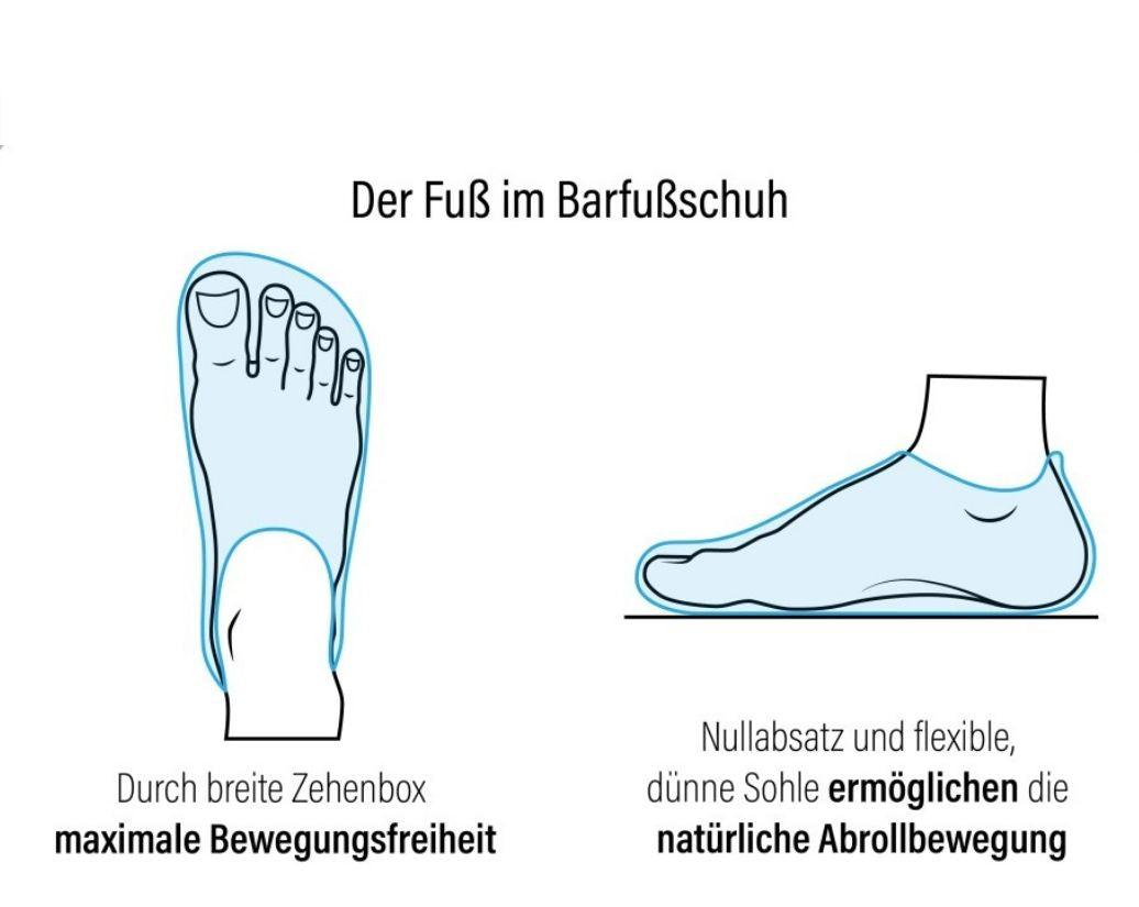 In ZAQQ Barfußschuhen hat Dein Fuß ausreichend Platz und kann über die dünne, hochflexible Sohle den Fuß so abrollen und bewegen, wie es die Natur vorgesehen hat. Dadurch trainierst Du bei jedem Schritt Deine Fußmuskulatur und beanspruchst Deine Sehnen und Bänder in natürlicher Weise.