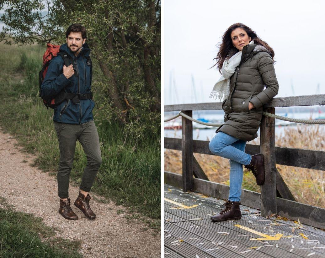 Unsere beiden niedrigen Outdoor-Barfußschuhe HIQE Low Brown Blue und HIQE Low Vegan Camel Red sind Deine wasserdichten, veganen Modelle für die wärmeren Tage des Jahres. Wenn Du mehr Schutz brauchst, durch Pfützen springen willst und Dir mehr Stabilität im Knöchelbereich wünschst, dann schau Dir unsere hochgeschnittenen, veganen Varianten HIQE Brown Blue Waterproof sowie HIQE Vegan Sierra Waterproof an. Durch die wasserdichte, vegane Innenmembran sind die vier genannten Barfußschuhe absolut wasserdicht.