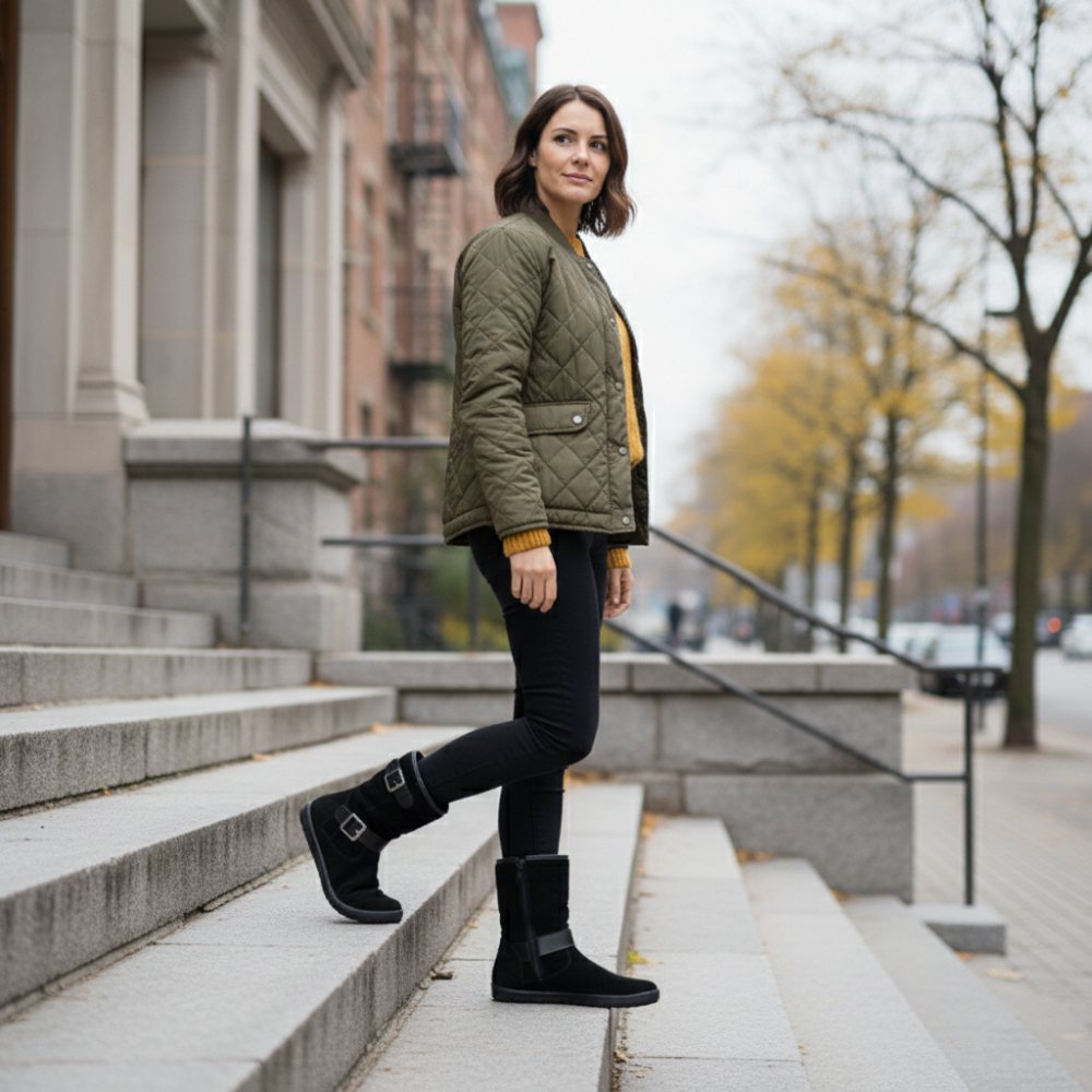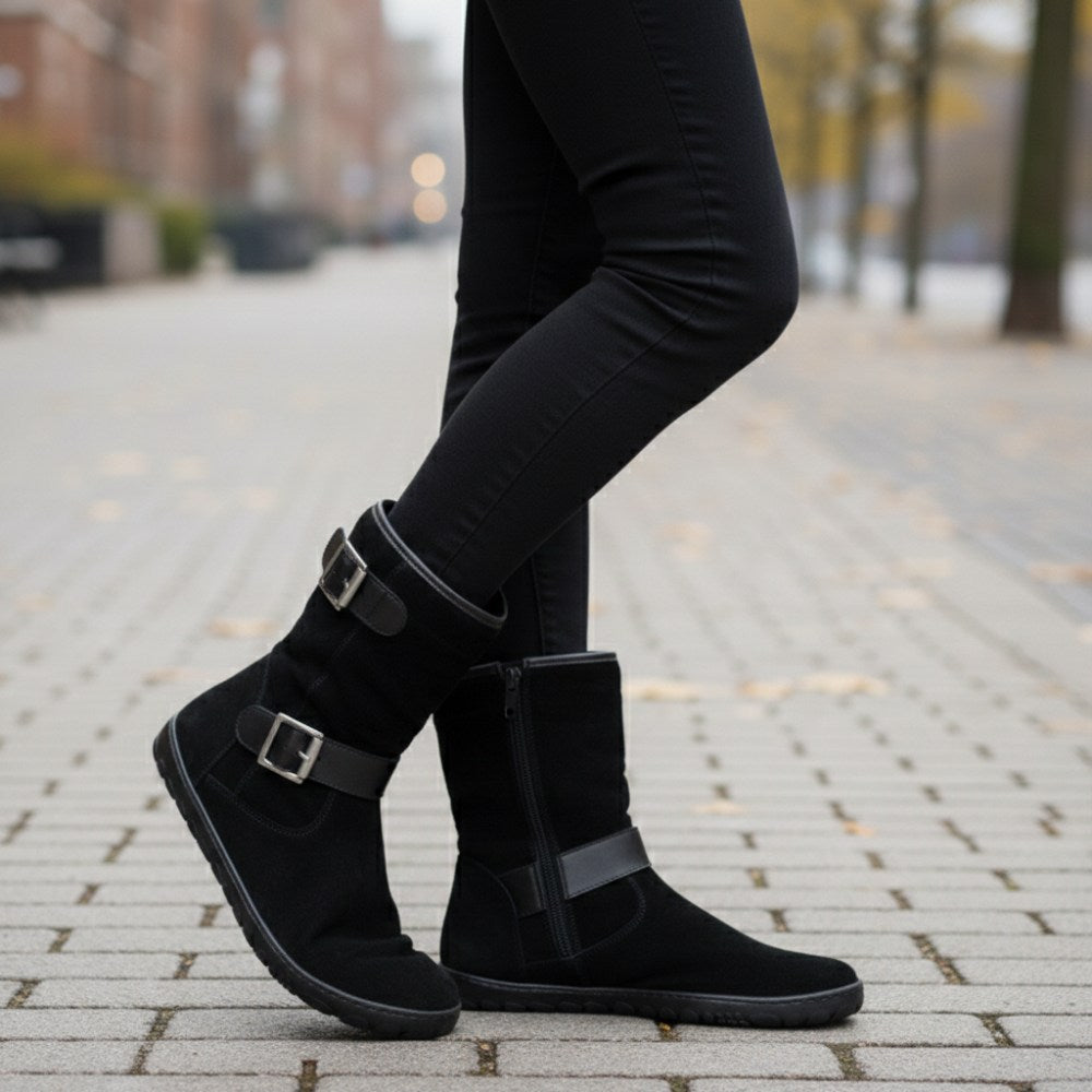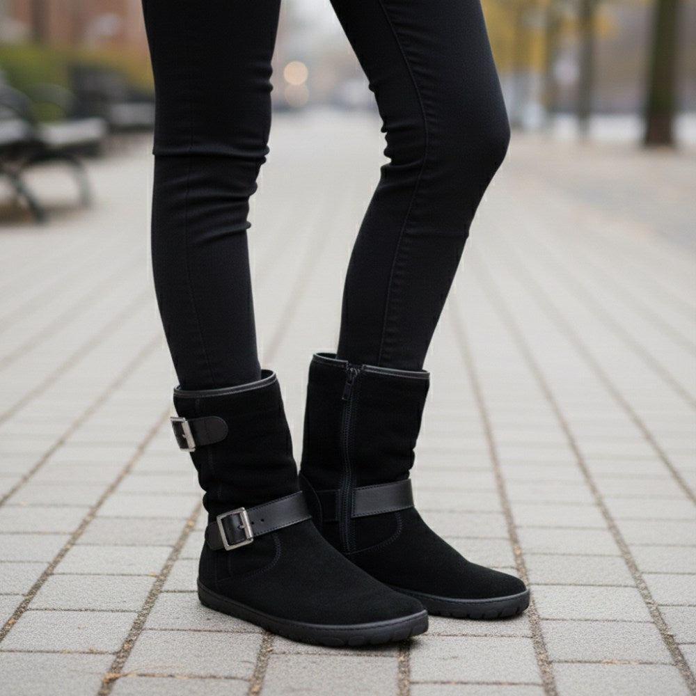 Notre ANIQ est votre nouvelle botte, qui peut être intemporelle et peut être combinée avec son cuir en daim noir.