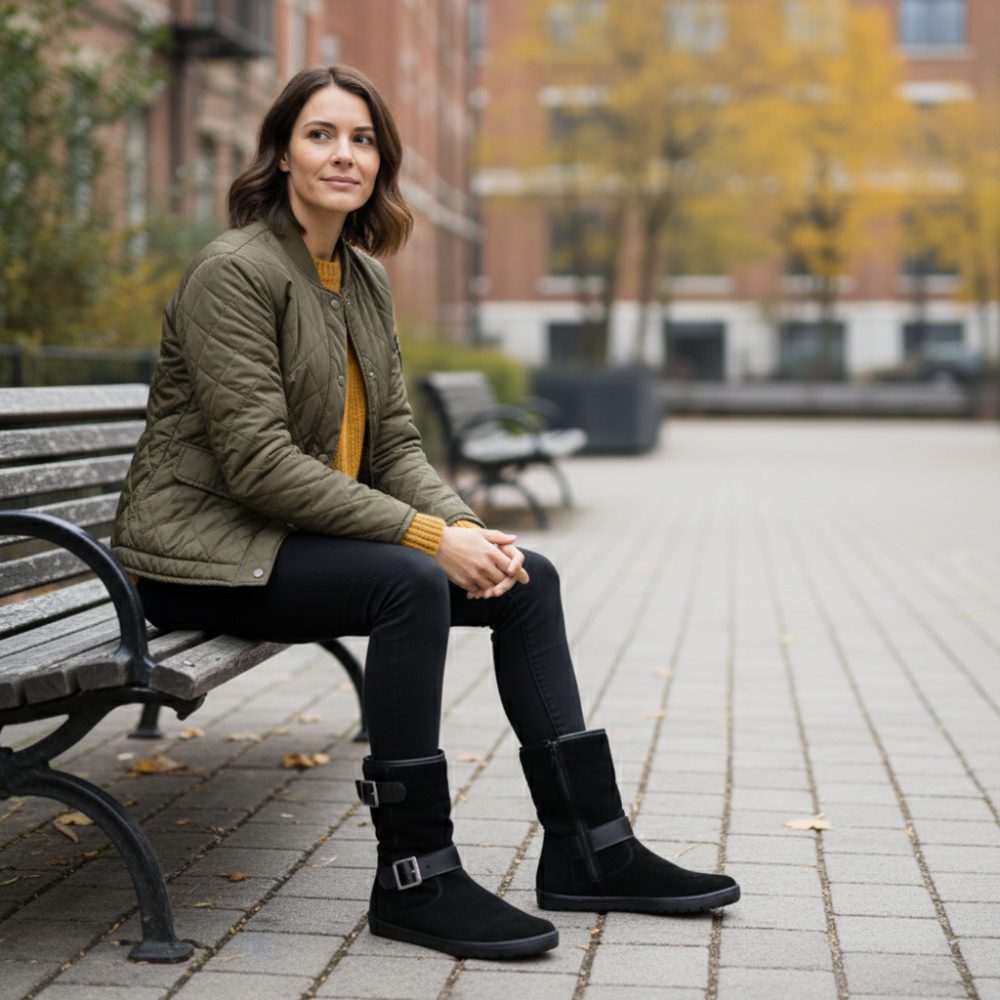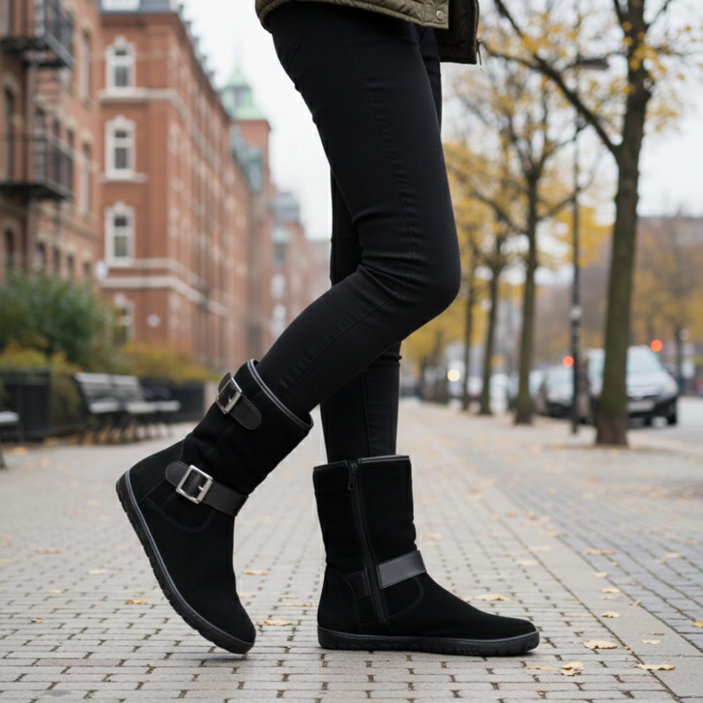 L'aimez-vous dès que l'été est terminé pour vous glisser dans vos bottes? Alors Aniq est exactement juste! Cette chaussure pieds nus convainc avec un daim doux et respirant de l'extérieur et un fine leder de l'intérieur. Ainsi, vous pouvez facilement porter un aniq les jours d'automne et de printemps plus chauds ou avec des chaussettes en laine même en hiver.