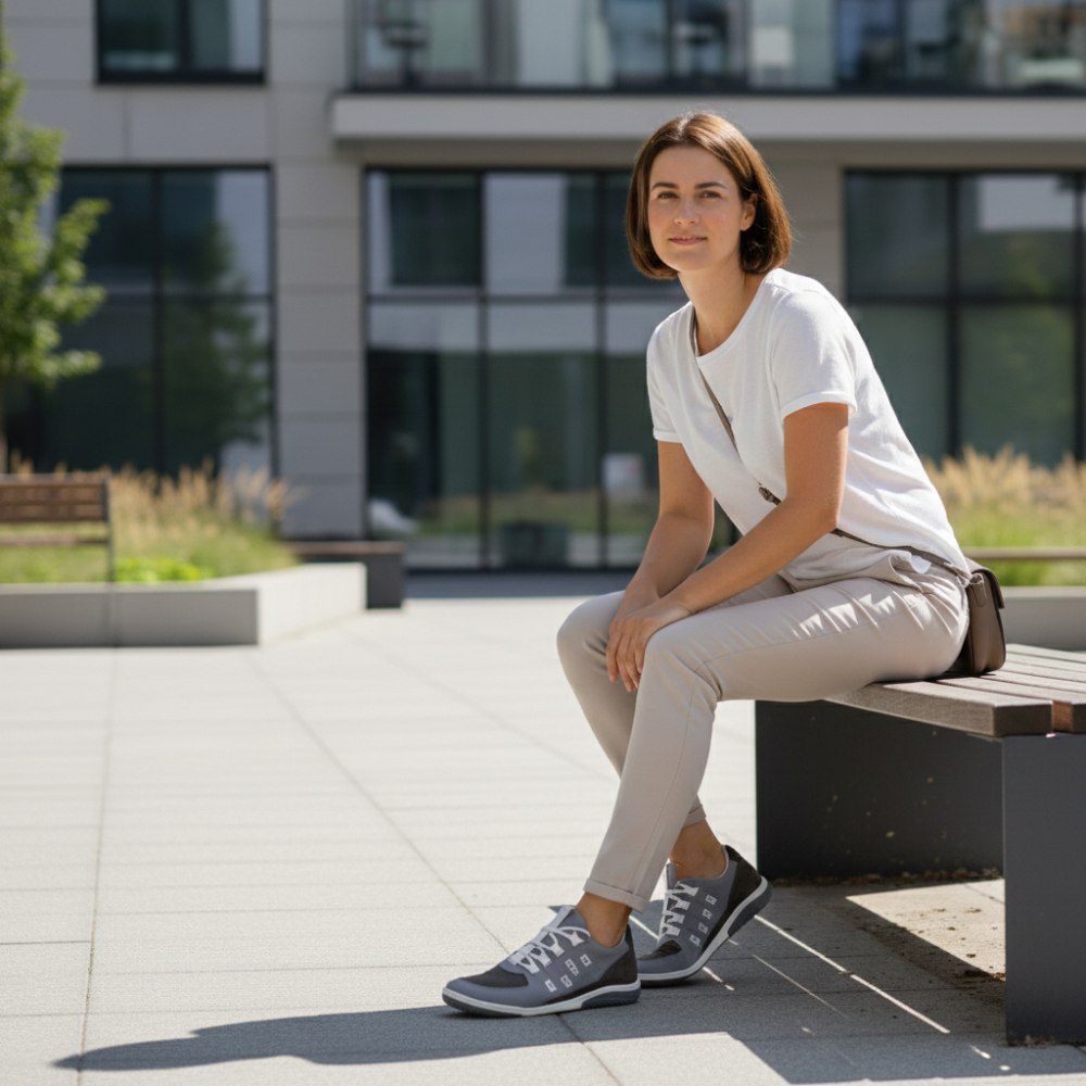 Couleurs subtiles, mais certainement pas ennuyeuses: notre gris Brisq est la chaussure pieds nus qui convainc avec un design simple et un confort élevé.