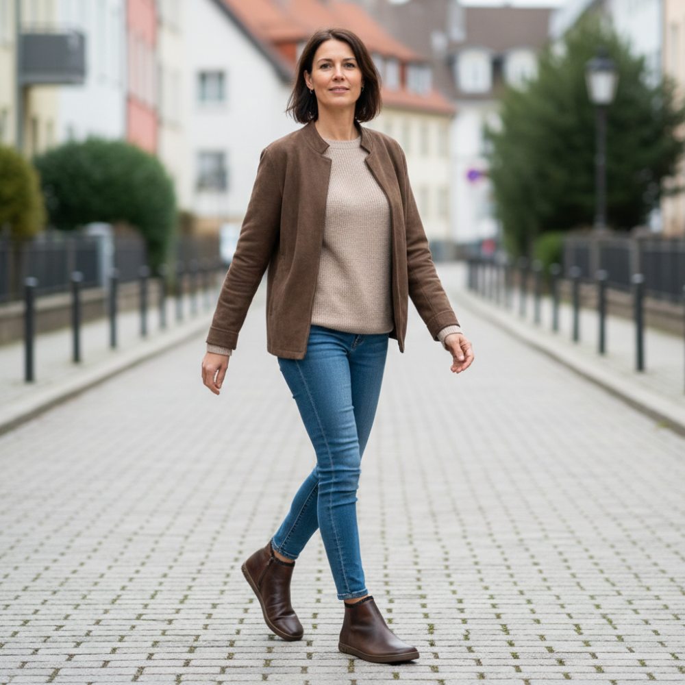 À première vue, Choqqo est assez simple, mais au deuxième coup, vous pouvez découvrir des détails raffinés qui en font quelque chose de très spécial. Le cuir lisse brun foncé obtient un look particulièrement noble à travers la finition ancienne. Avec l'ourlet à volants à la fin de la demi-botte, nous apportons un détail ludique, ce qui rend Choqqo beaucoup plus délicat et féminin.