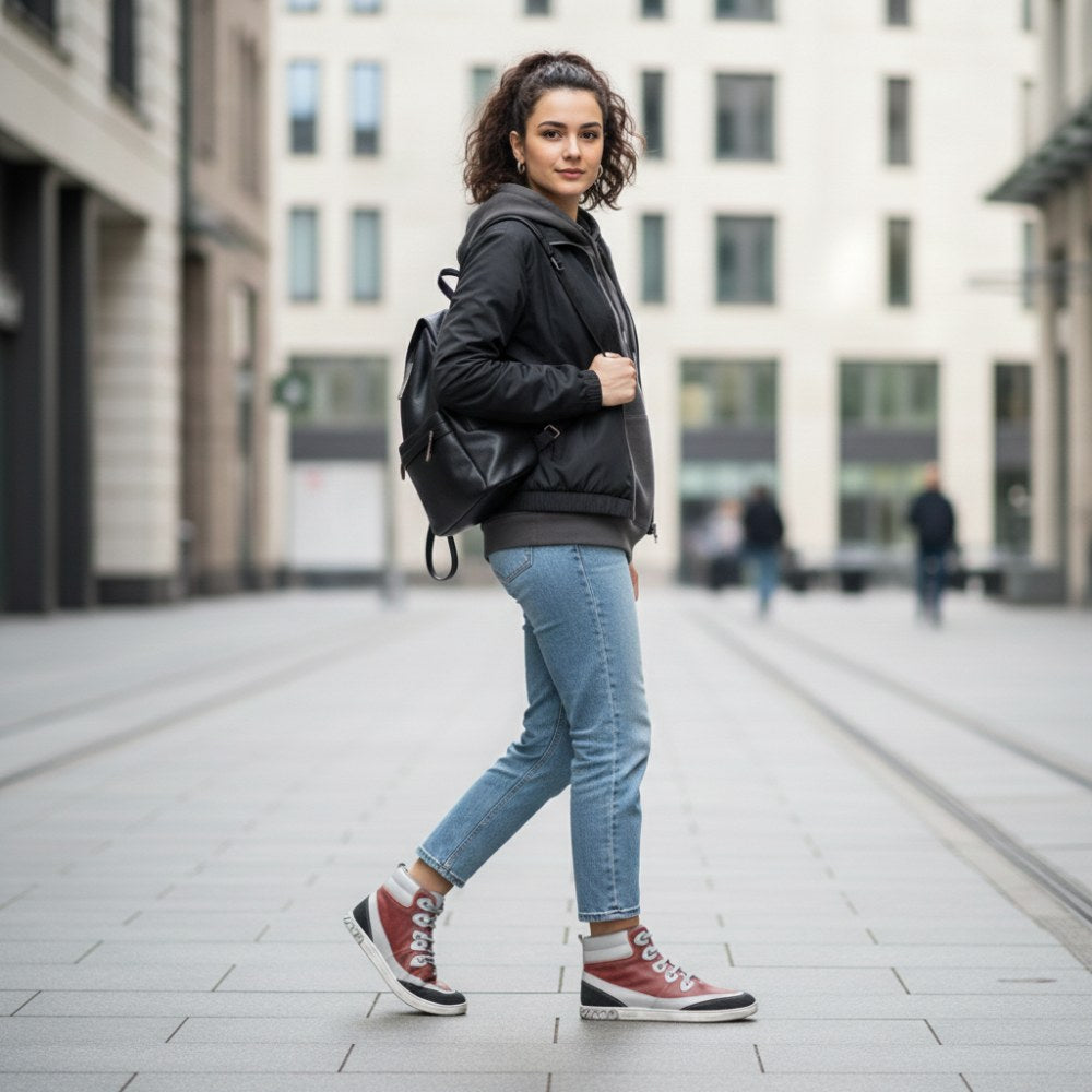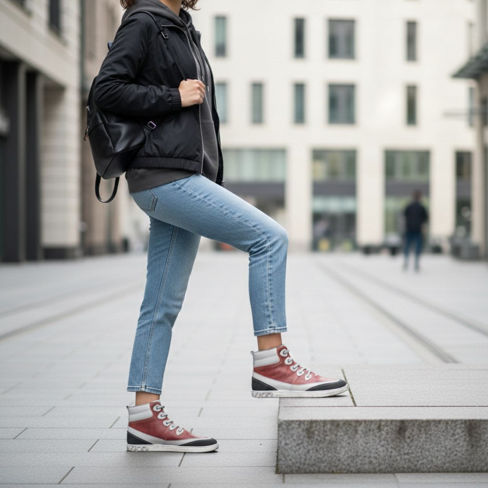 Notre Cinqo Red est votre nouvelle chaussure pieds nus, qui se démarque définitivement de la foule grâce à sa combinaison de couleurs réussie de rouge et de gris. Mais non seulement cela, il vous offre également un confort incroyablement élevé et est garanti d'être votre nouveau compagnon préféré.