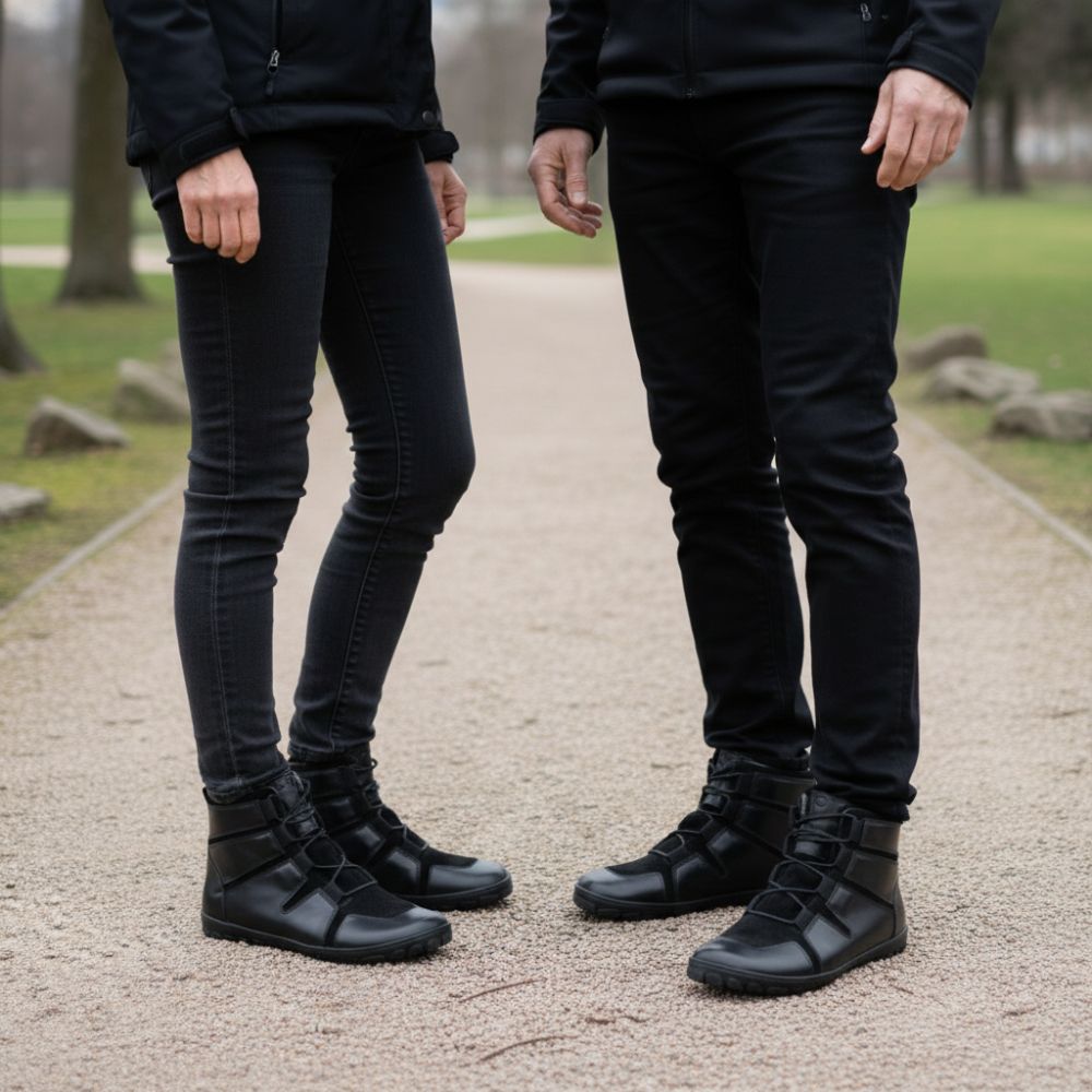 Daqota se compose d'un cuir lisse robuste et d'un tissu en maille respirant comme matériau supérieur. Avec le ton noir uniforme, cette chaussure pieds nus est non seulement idéale pour la randonnée, mais aussi en tant que compagnon quotidien dans la ville. Daqota est votre nouvelle chaussure aux pieds nus, qui coupe avec un jean, un pantalon de cordon chic, mais aussi pour des pantalons de randonnée.