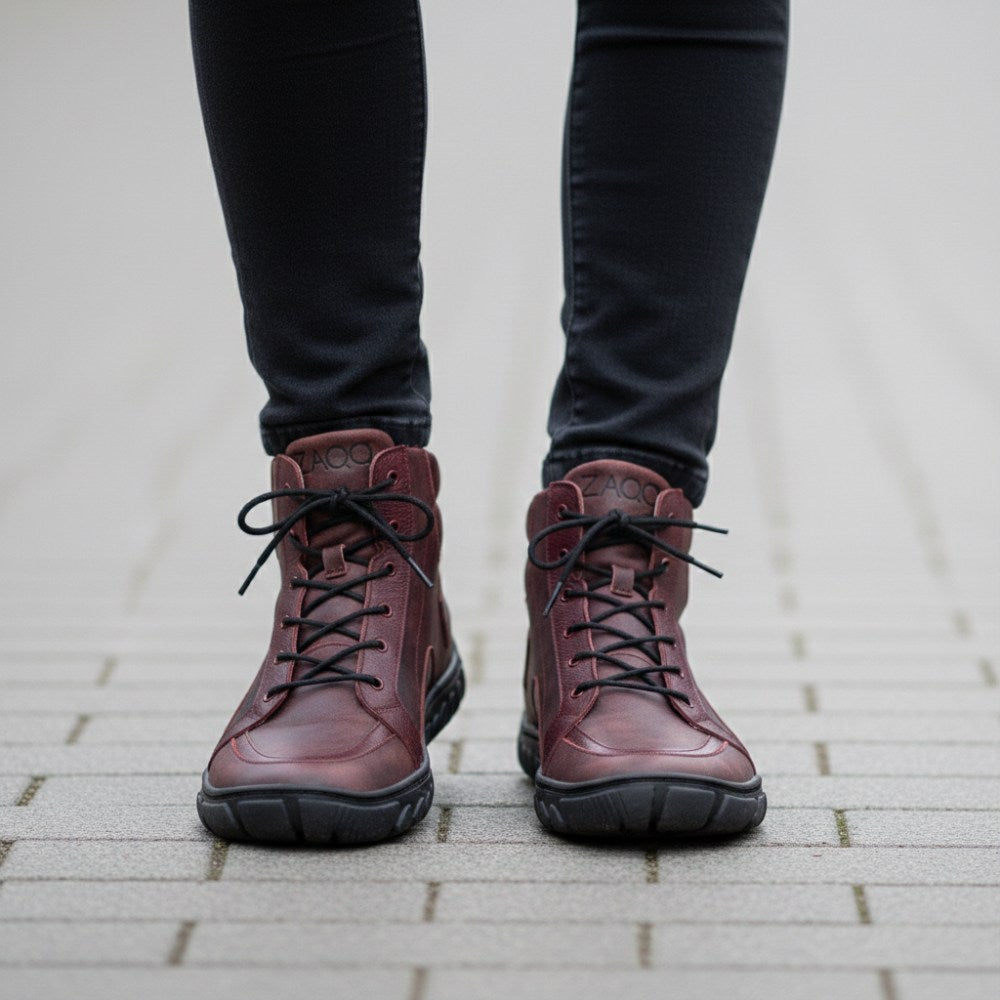 Avec Osqar Bordeaux, nous avons fait l'équilibre entre une chaussure en plein air classique et une sneaker récréative demi-high-high.