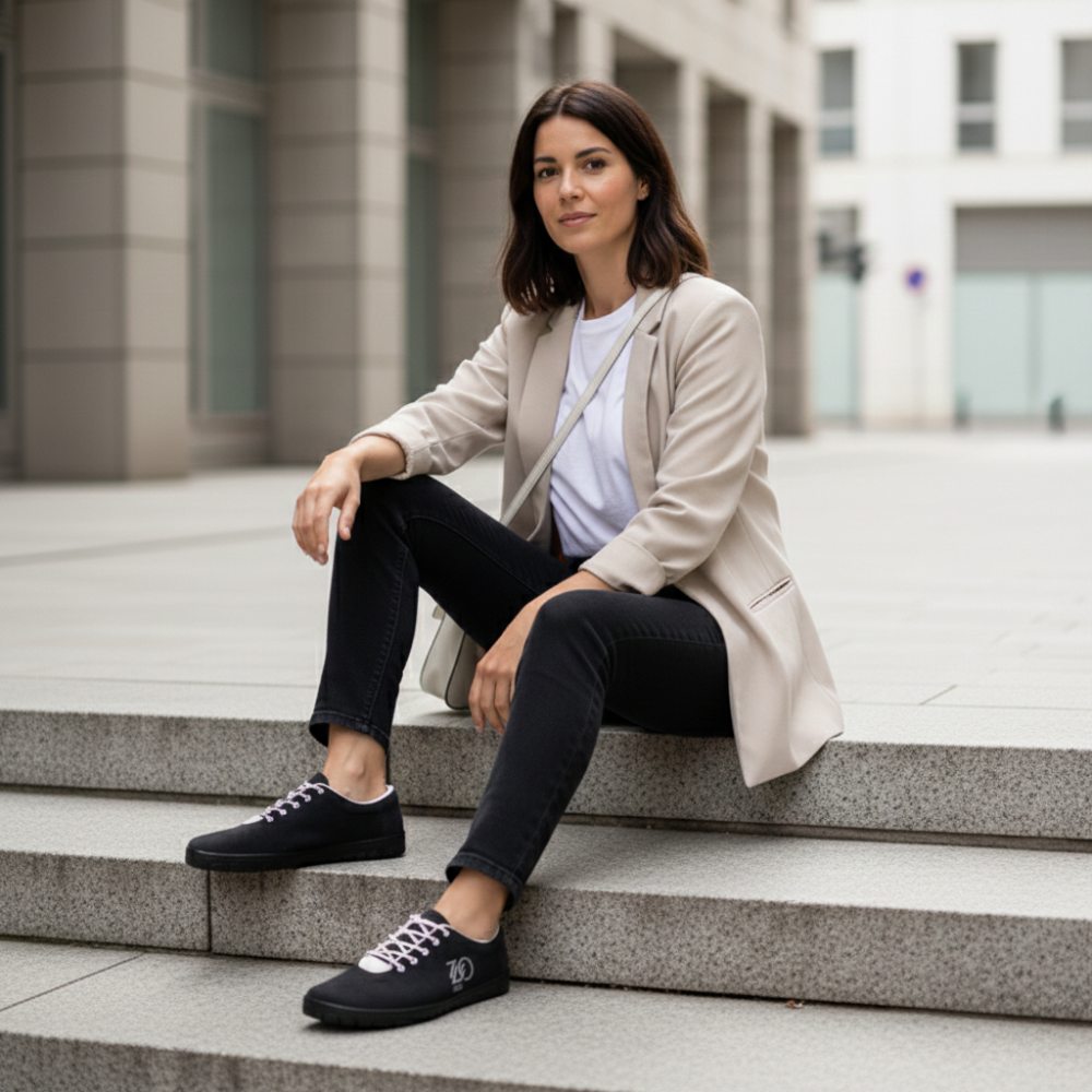 Oui, il peut - avec le modèle Qaro Black White! La sneaker chic à base de détails noirs et blancs est un incontournable absolu pour votre armoire à chaussures. La semelle en caoutchouc typique, très flexible et particulièrement câlin, fait de cette chaussure aux pieds nus un compagnon de tous les jours parfait. Le matériau est respirant, réduisant le soudage et donc idéal pour les mois les plus chauds.