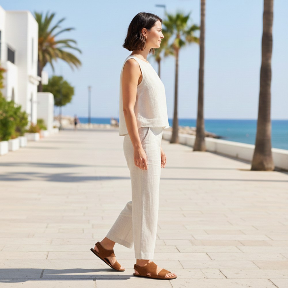 Sia che tu stia pianificando una giornata rilassata sulla spiaggia, passeggia per la città o visiti una festa estiva informale, Cisqa Brown è la scelta ideale. Possono essere combinati in modo eccellente con una varietà di abiti estivi: da abiti leggeri e gonne a pantaloncini e capperi. Il marrone caldo della pelle di velluto si armonizza meravigliosamente con toni naturali e terrosi, ma può anche servire da unicato contrasto con colori più chiari.