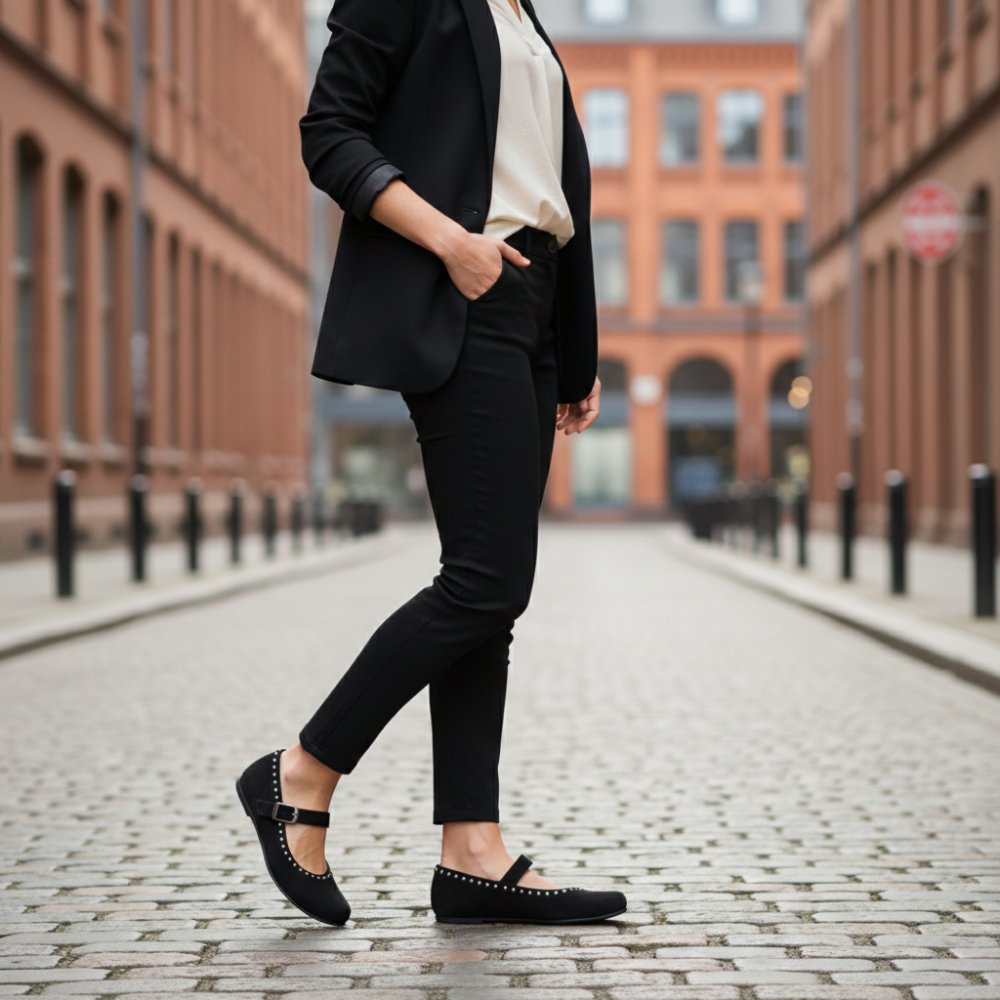 Conosci Dieqo Black, la comoda ballerina per le donne che apprezzano lo stile e il comfort. La scarpa a piedi nudi decorati con rivetti rotondi non è solo un occhio, ma ti dà anche la sensazione di libertà ad ogni passo.