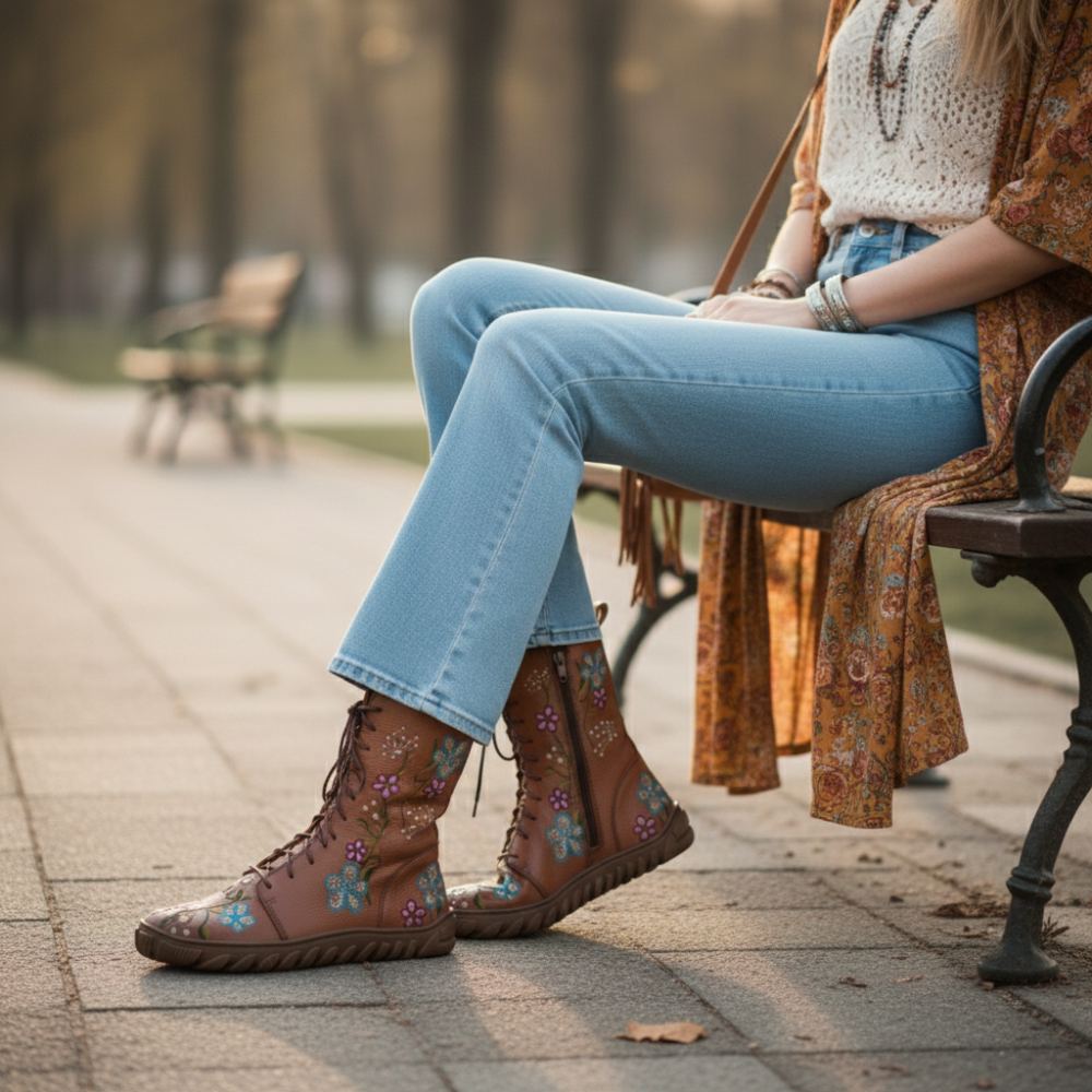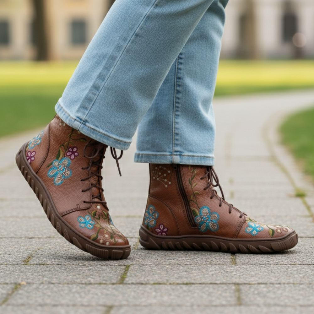 Questi stivali in tono marrone caldo, decorati con un design unico di potenza di fiori, non sono solo un punto culminante ottico, ma anche un simbolo di libertà e naturalezza. La pelle di Nappa premium garantisce un aspetto di alta qualità, mentre la cerniera sulla base e l'allacciatura consentono una vestibilità individuale e un facile serraggio.
