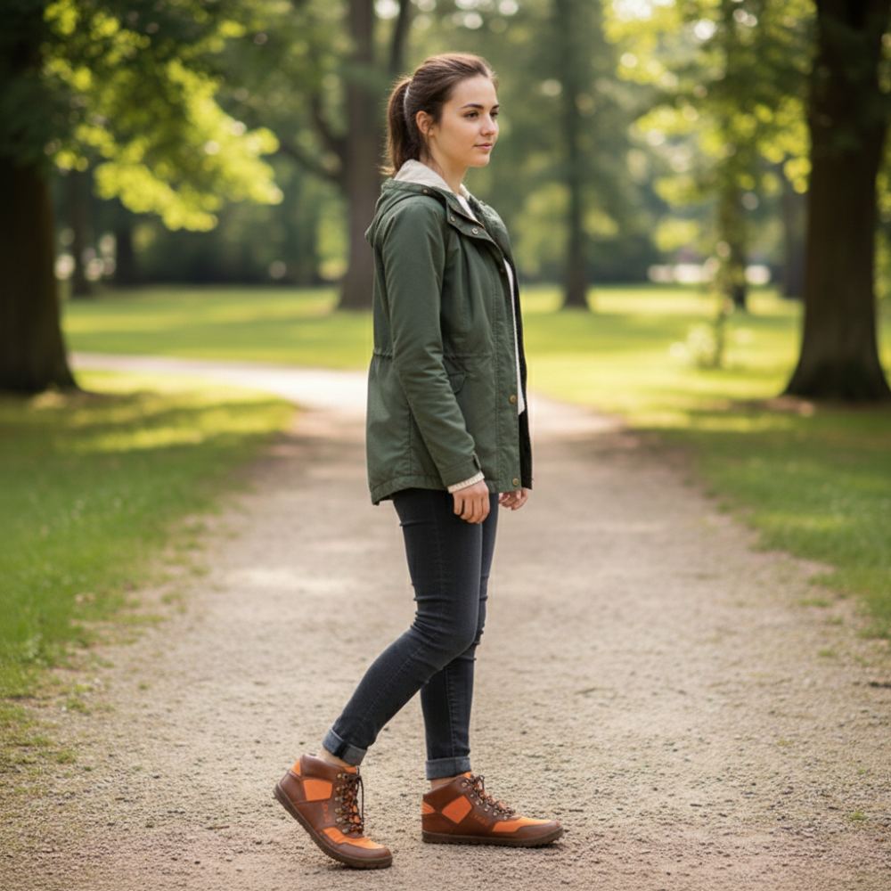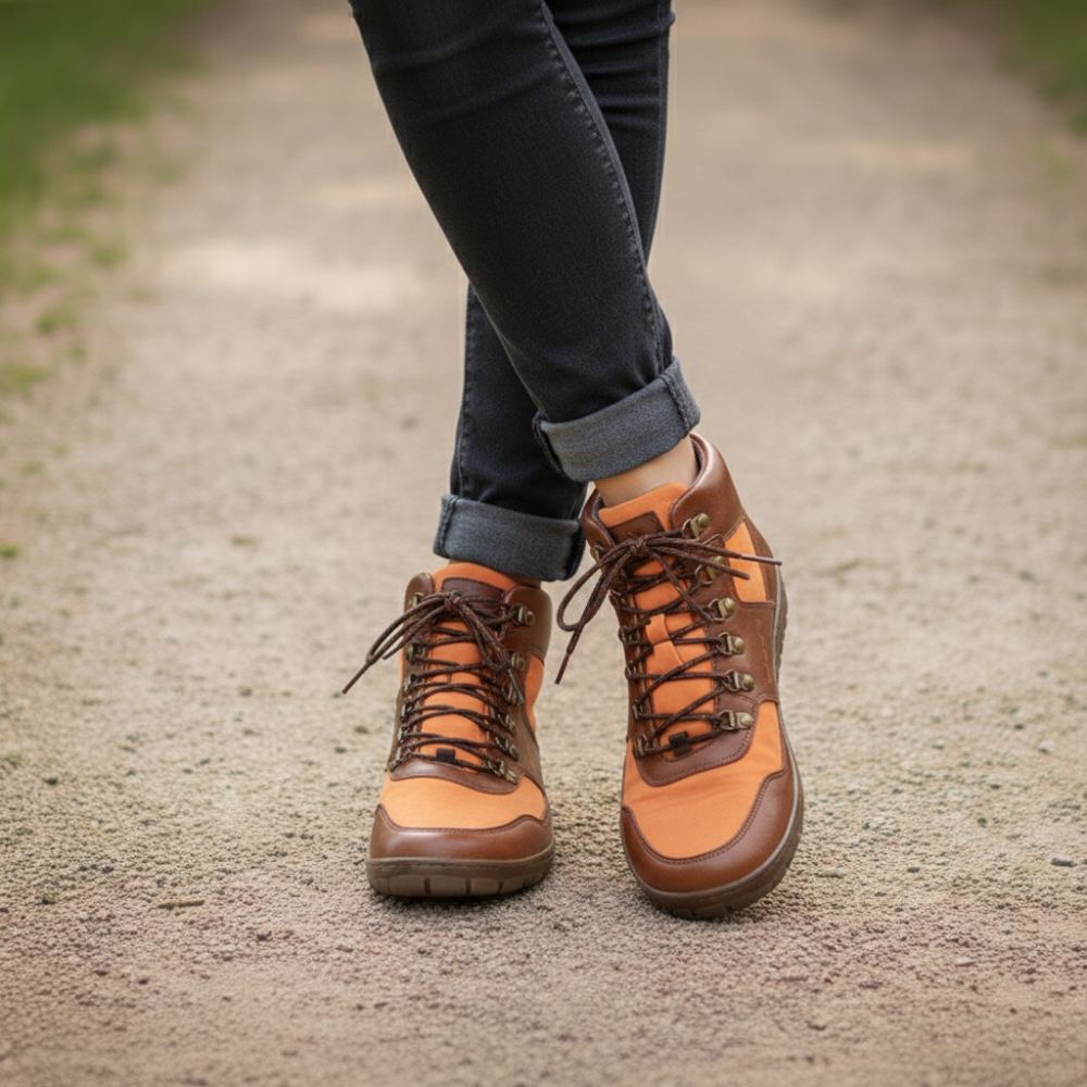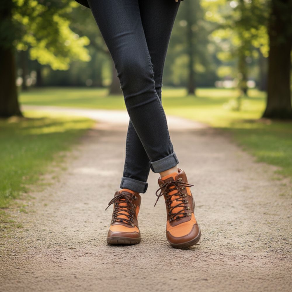 È finalmente lì - la nostra arancia vegana hiqe a metà taglio. Con questa scarpa vegana a piedi nudi esterni sei in prima linea in ogni tour.