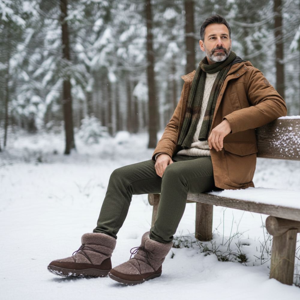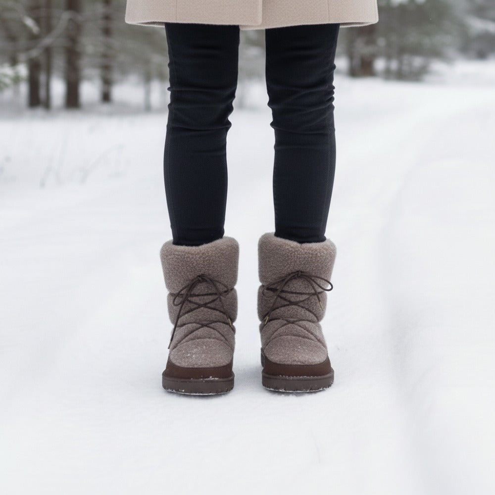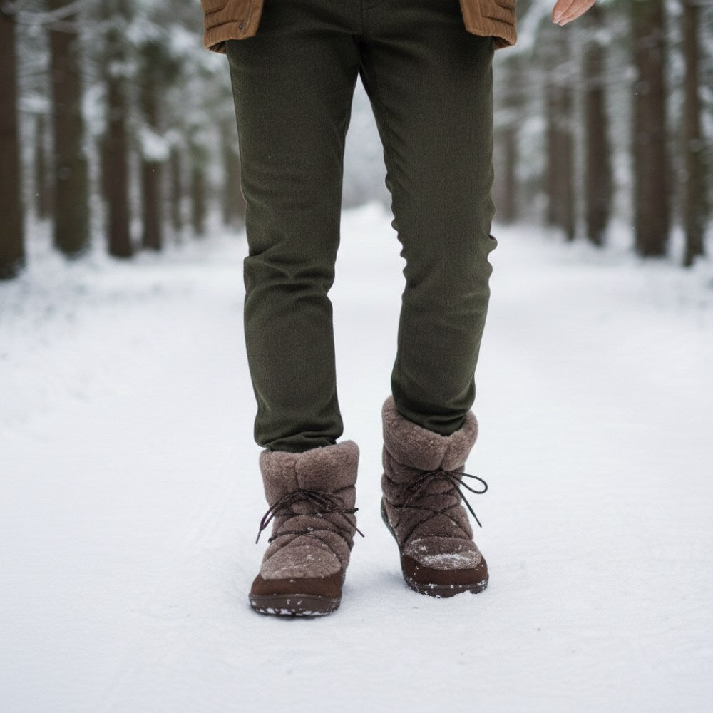 Nella zona inferiore, abbiamo gestito a mano la pelle di nubu di alta qualità alla suola a piedi nudi. Questo rende gli stivali invernali estremamente robusti, stabili e durevoli. Nell'area superiore, il nostro hyggeliq è costituito da agnelli accoglienti. Questo dà allo stivale a piedi nudi il suo aspetto incomparabile. Vorresti accarezzarlo subito, giusto? È possibile legare più vicino lo stivale mezzo più vicino o allargarti sui lacci che si nascondono discretamente nella pelliccia di pelle alta o si allargano se necessario. Quindi si siede sempre perfettamente sul tuo piede. I piedi freddi appartengono al passato, con hyggeliq sei accogliente e caldo dalla suola al vitello.