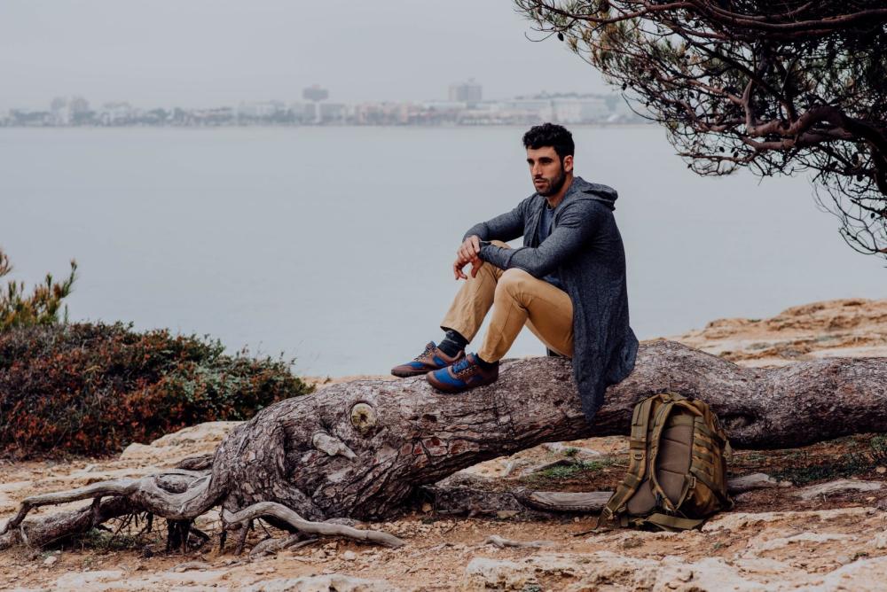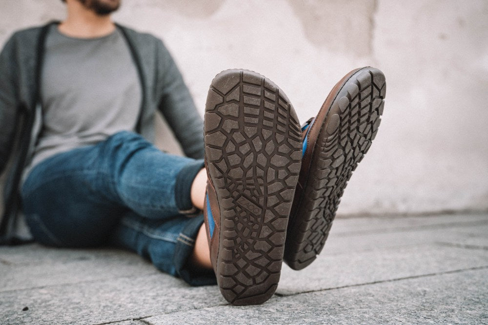 La scarpa chic a piedi nudi per il cordone colpisce la combinazione di colori naturale e allo stesso tempo moderna di marrone e blu. L'albero basso viene anche tagliato in modo che le caviglie siano ben supportate su percorsi più lunghi e inghiottiti.