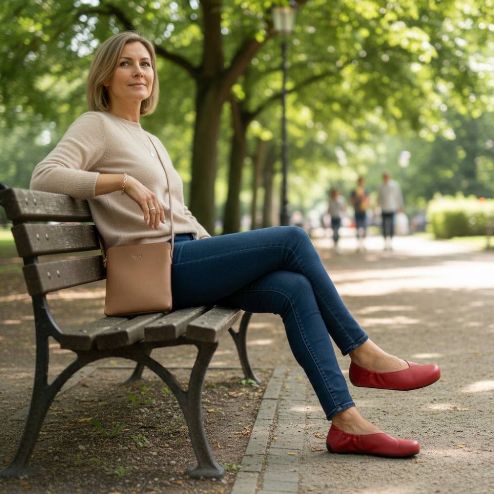 Gli inserti elastici assicurano che la ballerina si adatti perfettamente ai tuoi piedi senza premere o scivolare. Con la suola morbida e flessibile, è garantito che puoi muoverti liberamente nella scarpa a piedi nudi. In un modo unico, Maiqa Red combina un aspetto elegante con il comfort senza indossamento insuperabile.