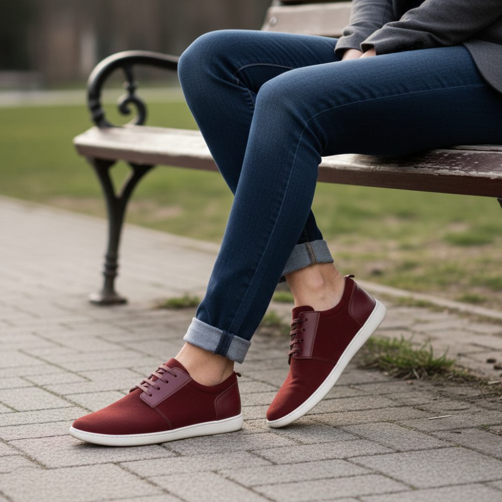 Per dare un contrasto alla pelle scura, il nostro PIQUANT Bordeaux prendi una suola bianca. Come per tutte le nostre scarpe a piedi nudi, è altamente flessibile in modo che il piede possa muoversi liberamente. L'ampio taglio assicura che le dita dei piedi possano fuggire naturalmente nella sneaker.