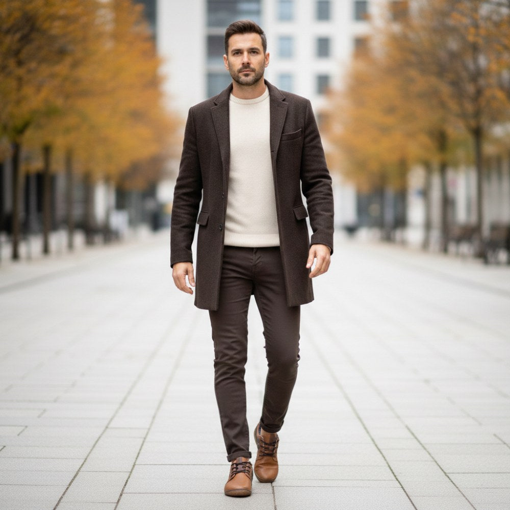 Elegante ed elegante per l'autunno! Questo motto è seguito dalla nostra modella Qanberra Brown - una scarpa a piedi nudi per uomini che è perfetta per il tempo libero, ma anche per l'ufficio.