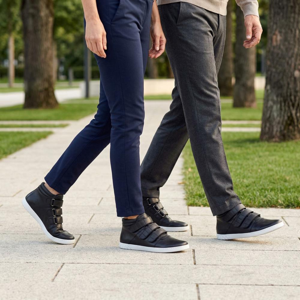 Qooper può essere trasportato in modo eccellente per tutti gli abiti per il tempo libero, ma con la pelle liscia nera questa scarpa a piedi nudi va anche al venerdì casual per l'ufficio. Qooper Black è la scarpa a piedi nudi per tutti coloro che lo desiderano particolarmente pratici ed eleganti.