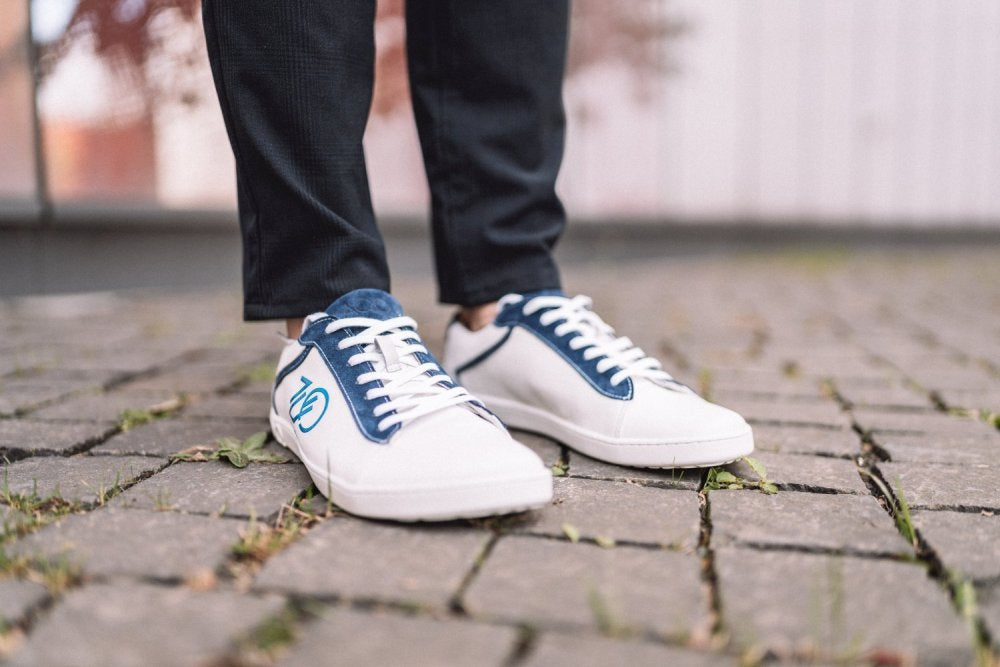 Das schneeweiße Nappaleder wurde mit dunkelblauem Veloursleder abgesetzt, wodurch nicht nur ein interessanter Kontrast entsteht, sondern der Barfußschuh auch optisch gestreckt wird. Die breiten Schnürsenkel passen perfekt zum restlichen Design und mit dem ZAQQ Logo zeigst Du auch nach außen, dass Du auf Qualität großen Wert legst.