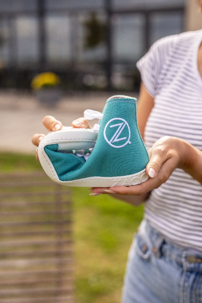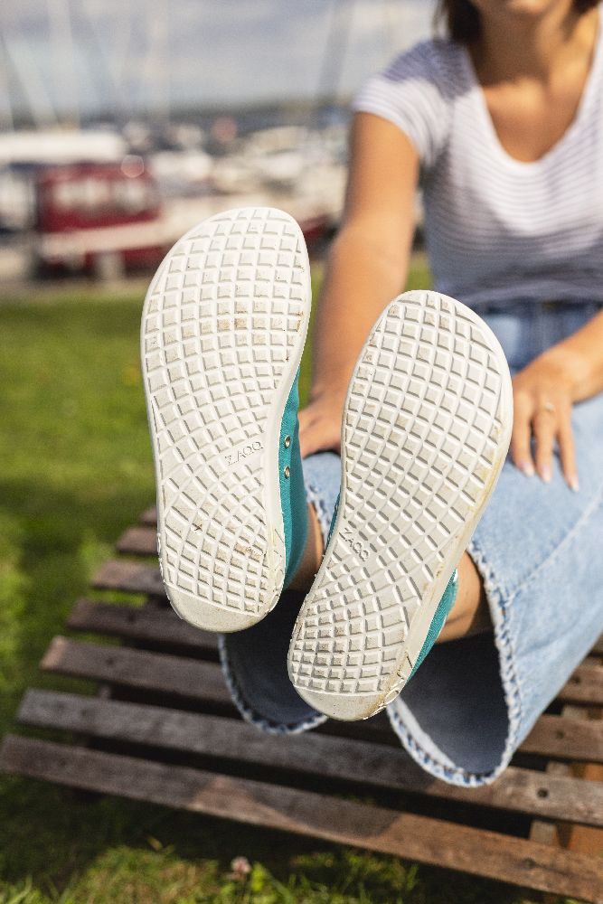 Hergestellt aus türkisblauem Denim, bieten sie nicht nur ein frisches, auffälliges Design, sondern auch alle Vorteile eines Barfußschuhs. Mit der weißen Zehenkappe und den weißen Schnürsenkeln wirken sie sportlich und gleichzeitig modern.