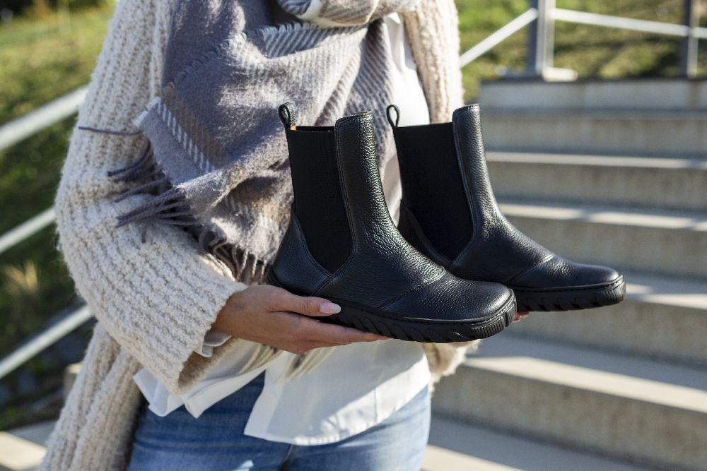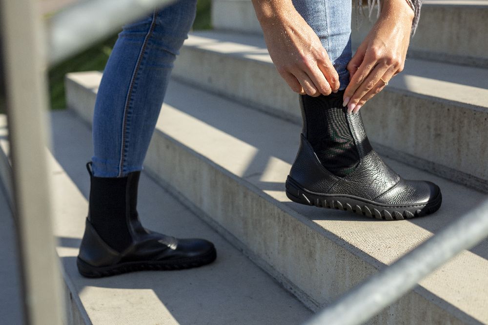Diese Stiefel verbinden den Komfort von Barfußschuhen mit dem unverkennbaren Stil der klassischen Chelsea Boots. In elegantem Schwarz gehalten und aus hochwertigem Nappaleder gefertigt, bieten sie nicht nur ein luxuriöses Tragegefühl, sondern auch Langlebigkeit.