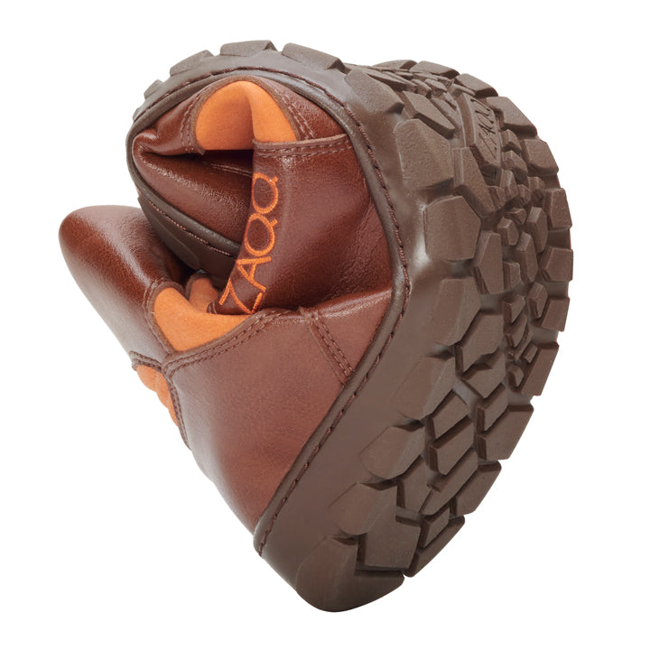 Unsere spezielle ZAQQ Outdoorsohle bietet Dir Grip auf allen Oberflächen und ist gleichzeitig wunderbar flexibel, um eine natürliche Bewegung Deines Fußes zu ermöglichen. Den Untergrund spüren und bestens geschützt sein – unser HIQE Mid Vegan Orange macht es möglich.