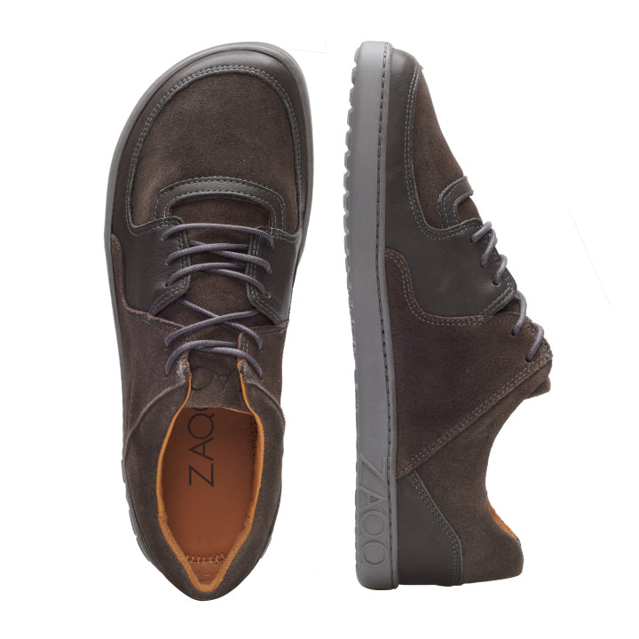 Gefertigt aus grauem Nappaleder und braungrauem Veloursleder, bietet dieser Sneaker einen dezenten, aber stilvollen Look, der sich wunderbar in Deine Garderobe einfügt. Die sportliche, graue ZAQQ Sneaker-Sohle sorgt dabei für das typische Barfußgefühl, das Dich leicht und unbeschwert durch den Tag trägt.