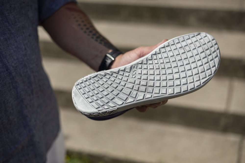 Outdoor Kautschuksohle mit Nullabsatz, dadurch Entlastung der Wirbelsäule und Schonung der Gelenke, unterstützt die natürliche Körperhaltung