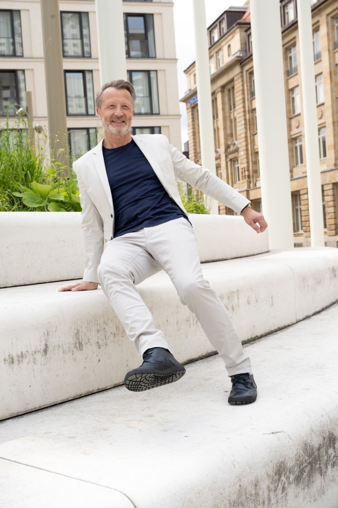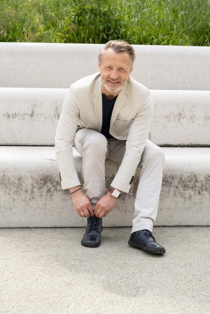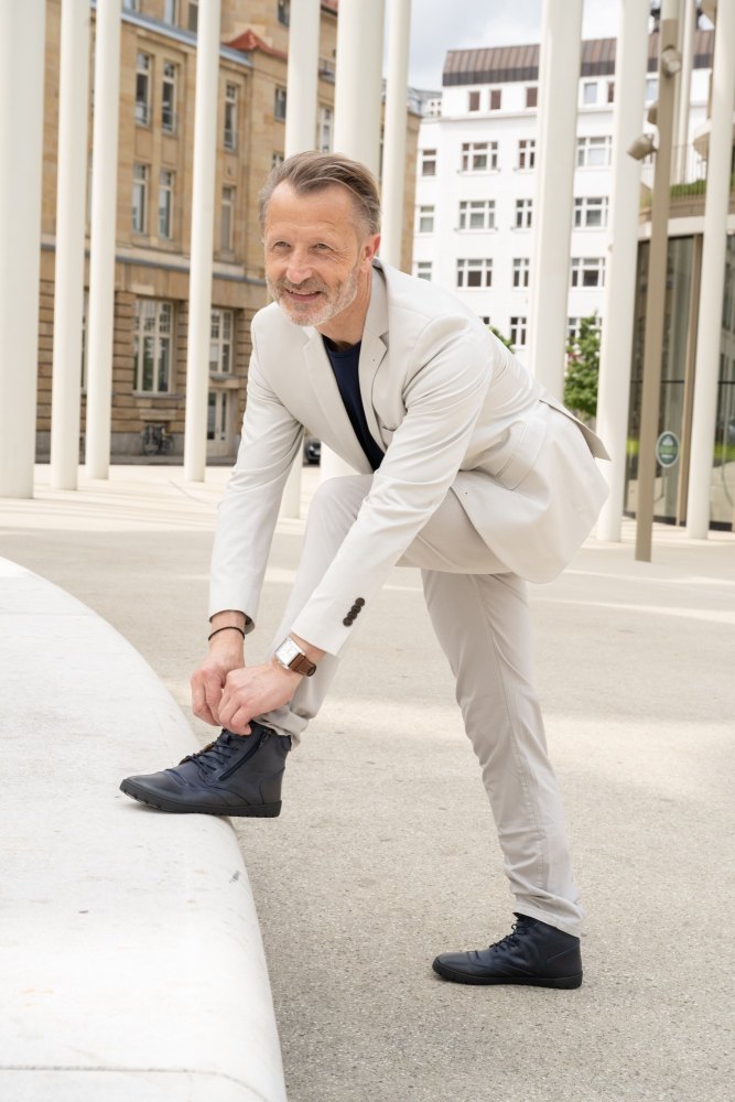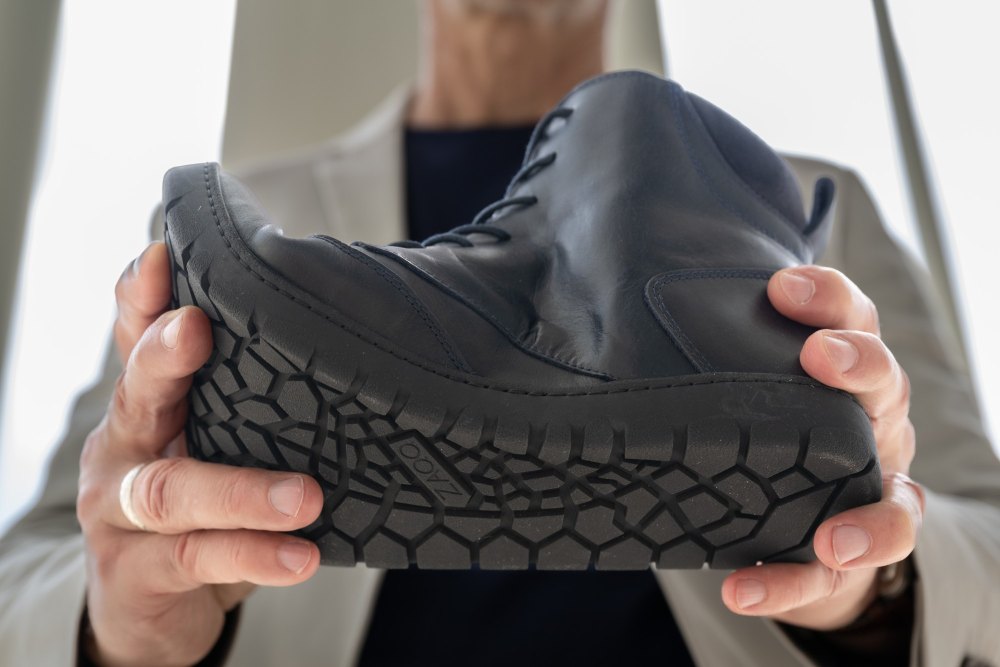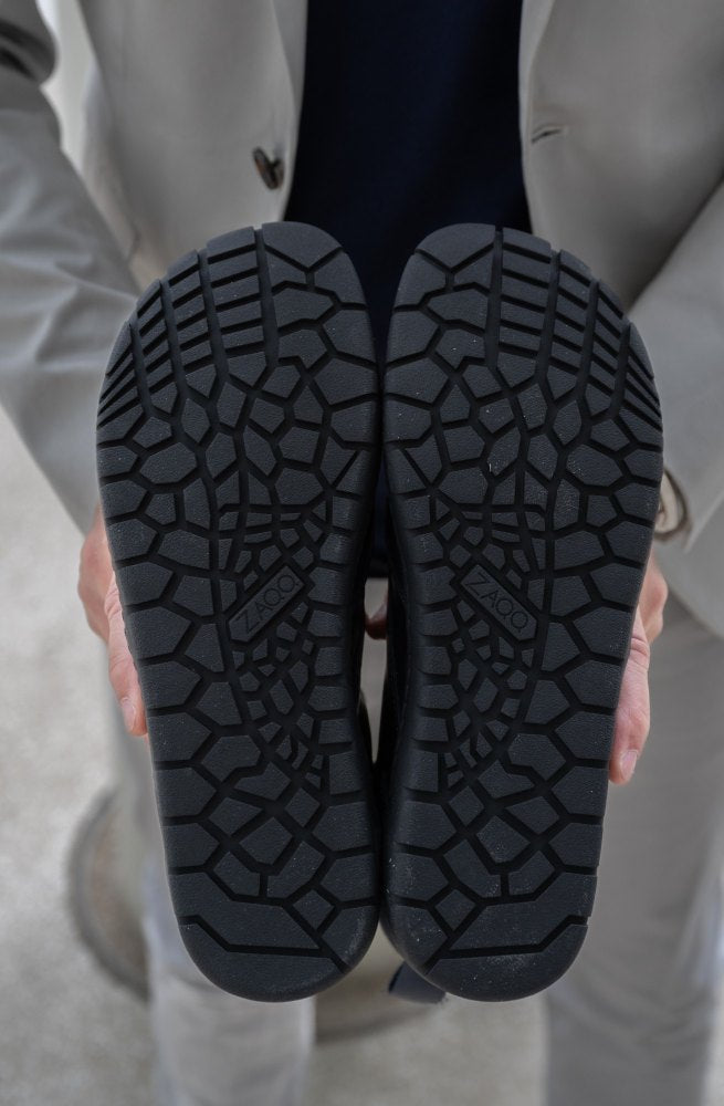 Outdoor Kautschuksohle mit Nullabsatz, dadurch Entlastung der Wirbelsäule und Schonung der Gelenke, unterstützt die natürliche Körperhaltung