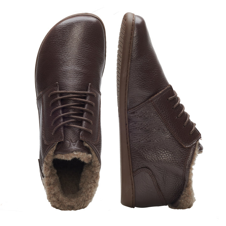 Dank der typischen Barfußschuheigenschaften fühlst Du Dich in diesem Winterschuh federleicht. Die dunkelbraune Schnürung und Sohle runden das schlichte, aber elegante Design ab.