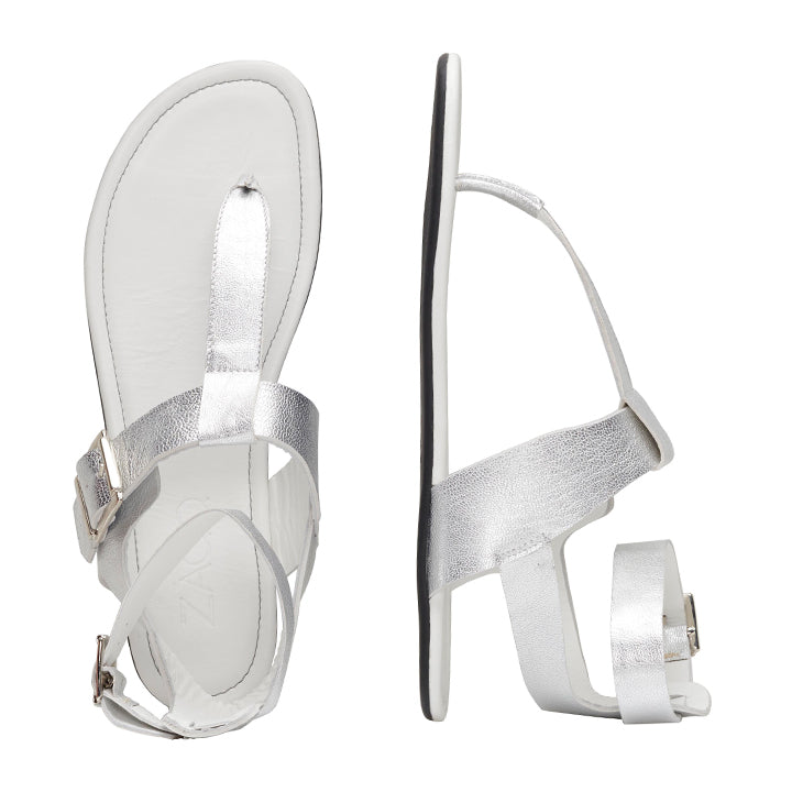 Für QAPRI verwenden wir feinstes Nappaleder, welches besonders weich ist und Deine Füße in glänzender Silberoptik umspielt. Vorn gibt Dir der Zehentrenner entsprechenden Halt. Das Beste sind allerdings die Schnallen, denn damit kannst Du sowohl am Spann als auch oberhalb des Knöchels die Barfußsandale optimal auf Deine individuelle Weite einstellen.
