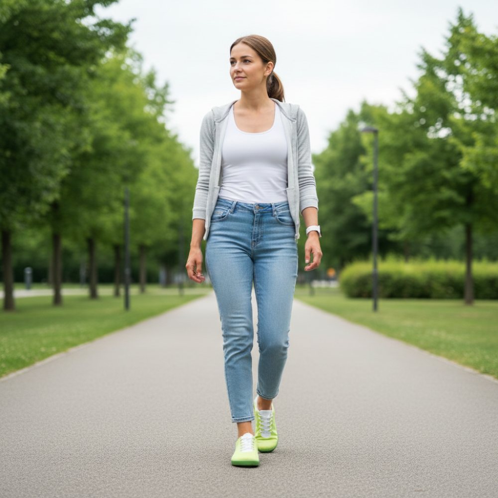 Kautschuksohle mit Nullabsatz, dadurch Entlastung der Wirbelsäule und Schonung der Gelenke, unterstützt die natürliche Körperhaltung