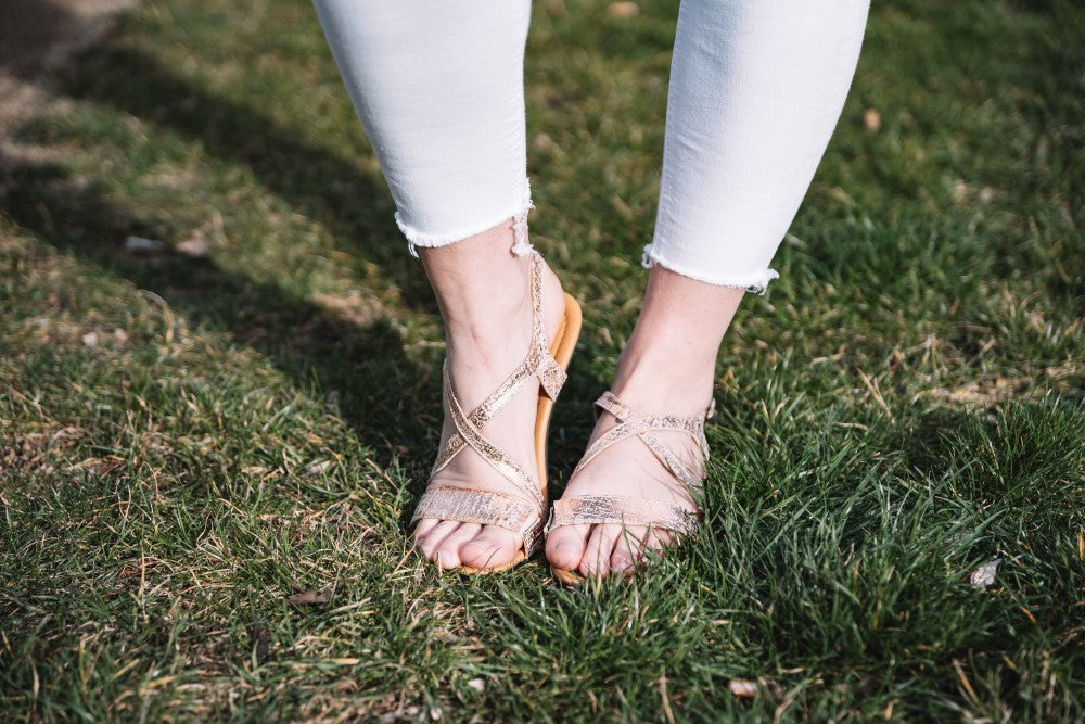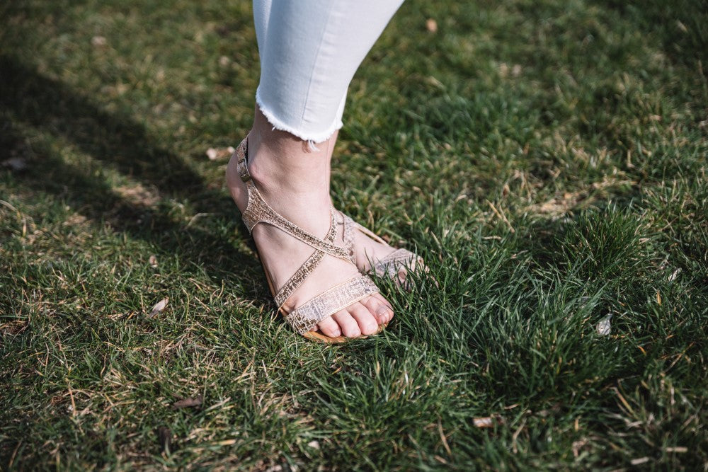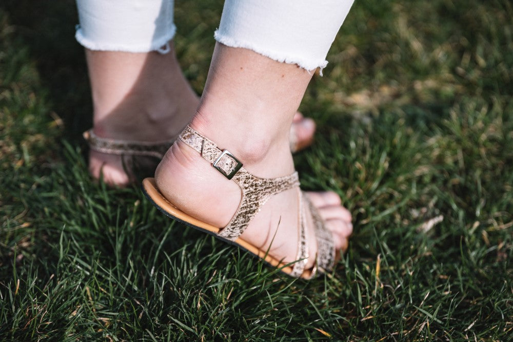 QEE ist unsere stylische Barfuß-Sandale, die Deinen Füßen auch bei heißesten Temperaturen im Sommer genug Luft zum Atmen gibt.