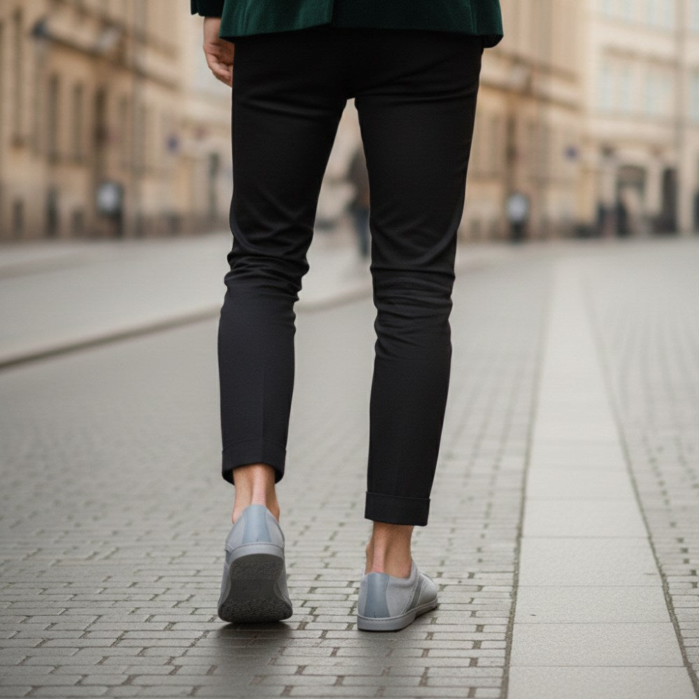 Dieser klassische Businessschuh ist zeitlos und passt hervorragend zum Anzug, lässt sich aber auch problemlos zur Jeans kombinieren, um mehr Eleganz in den Casual Look zu bringen. Für QENTLE verwenden wir hochwertiges Velours- und Nappaleder, welches durch die Linienführung und den rahmenden Broguings besonders nobel aussieht und den Barfußschuh optisch streckt.