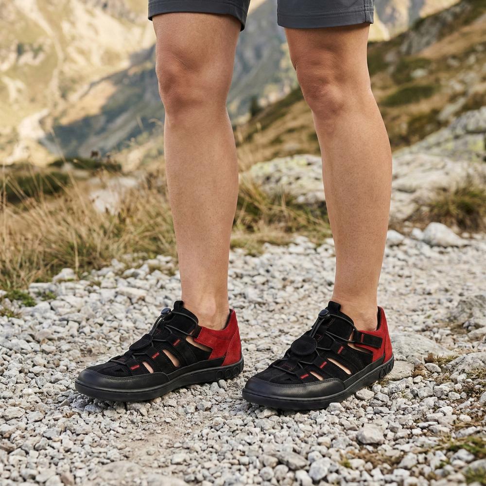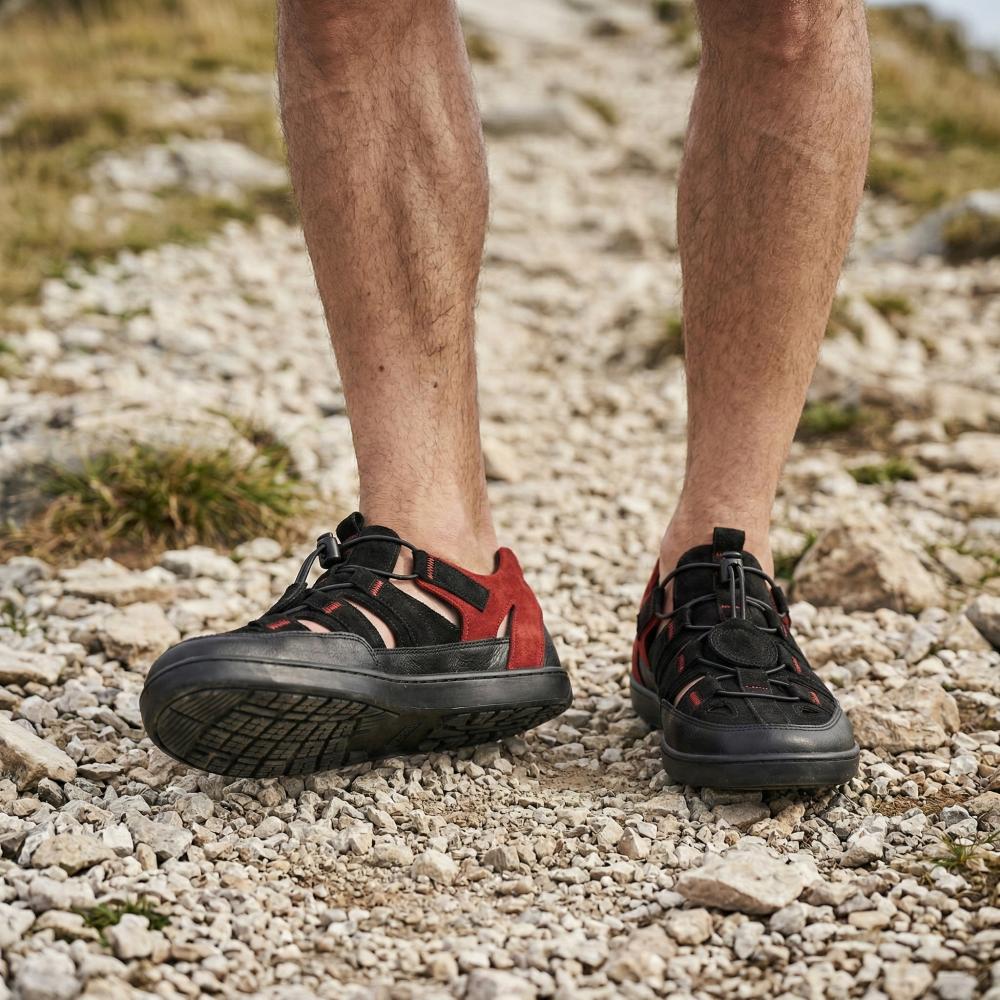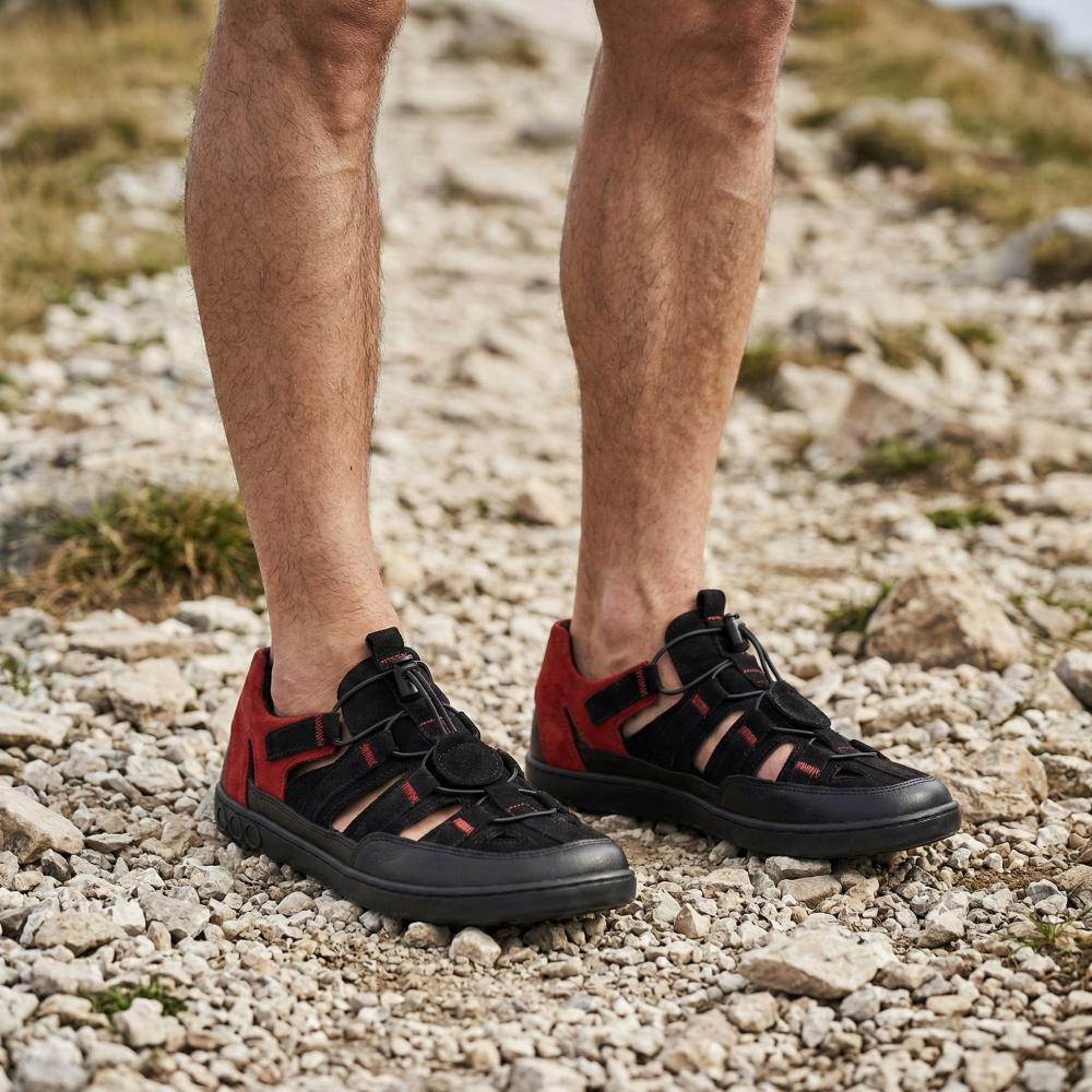 Rot und schwarz ist einfach immer eine gute Kombination und die Verbindung aus offener Sandale und geschlossenem Outdoorschuh machen unseren QERRY zum perfekten Begleiter im Sommer.