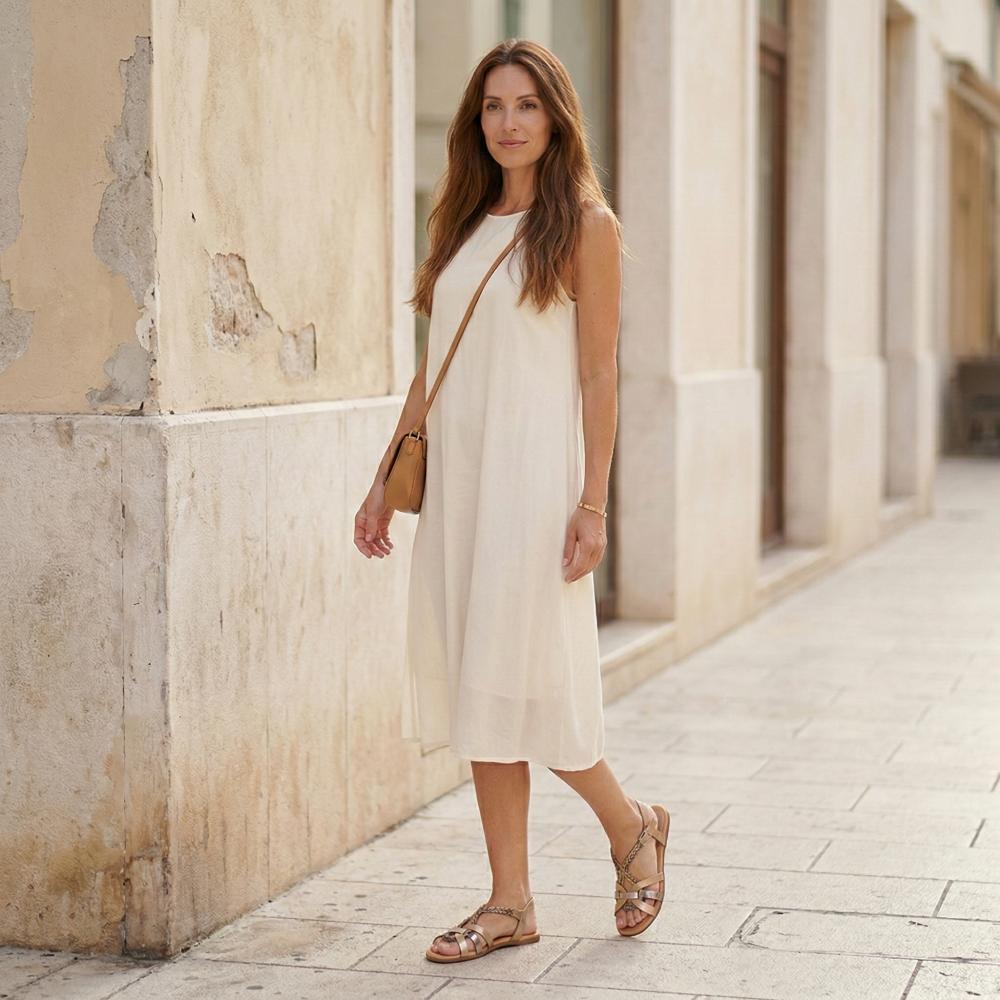 Die geflochtene Struktur aus Gold und Silber gibt unserem QEZ seinen edlen und besonders femininen Charakter. Mit dieser Barfußsandale peppst Du jedes Outfit auf und läufst megabequem durch den Sommer.