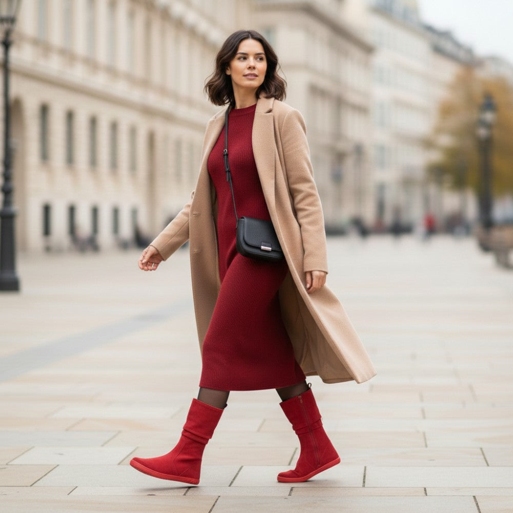 Lady in Red...! Genau die wirst Du sein, mit dem wunderschönen hohen Stiefel QOM Red in einem knalligen Rotton! Dass dieser sexy Stiefel auch noch ein Barfußschuh ist, macht ihn umso begehrenswerter.
