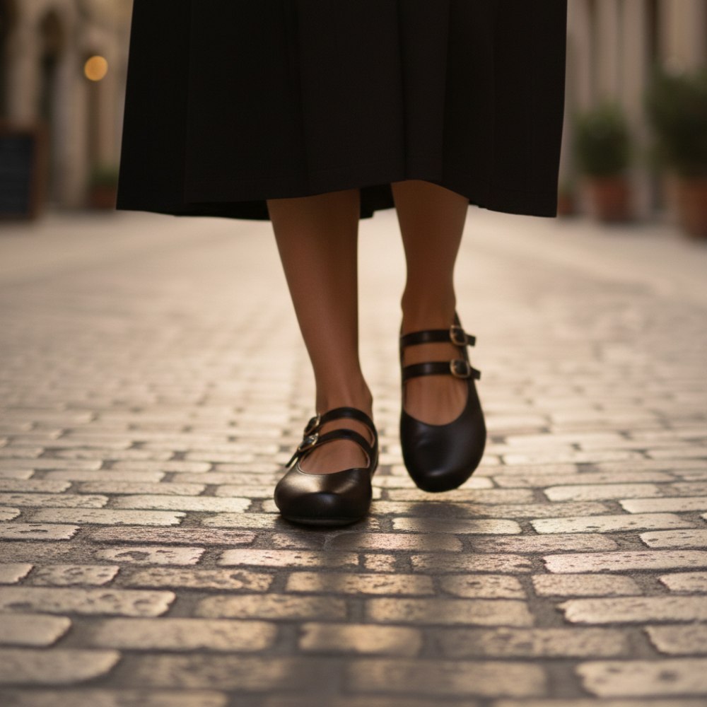 Triff QOMET Black, den Ballerinaschuh, der Eleganz neu definiert.