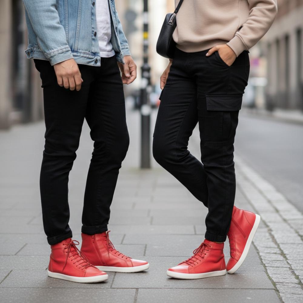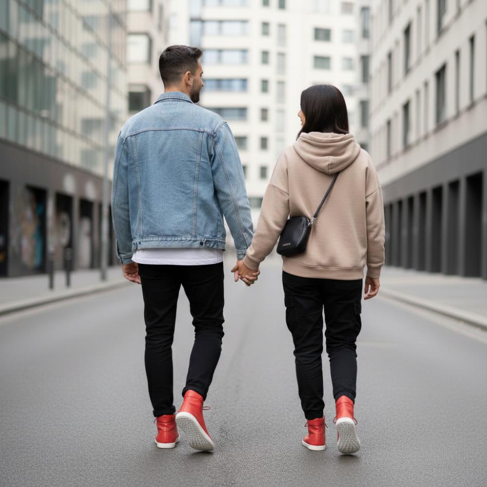 Der besonders hohe Schaft mit Verstärkung und die Schnürung mit roten Lederbändern, sorgen für den perfekten Halt und Unterstützung Deiner Knöchel. Die Sohle aus Kautschuk ist wie bei allen ZAQQ Barfußschuhen sehr flexibel und der integrierte Nullabsatz sorgt für eine Entlastung der Wirbelsäule und eine gesündere Körperhaltung.