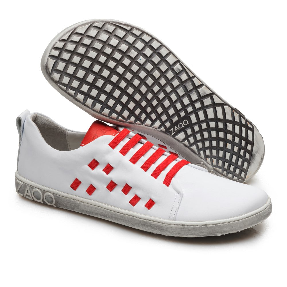 STRAQ zeigt, dass ein Barfuß-Sneaker absolut stylisch sein kann. Wir lieben ihn, denn er ist nicht nur optisch perfekt, sondern auch absolut funktional. Die Elastikbänder ersetzen Schnürsenkel und haben den Vorteil, dass Du ganz bequem in den Sneaker hineinschlüpfen kannst, ohne ihn aufzuschnüren. Das war uns aber nicht genug, wir wollten keinen Mainstream, sondern ein einmaliges Design! Kurzerhand haben wir die Bänder ins Leder eingeflochten und damit unserem STRAQ sein charakteristisches und doch dezentes Muster verpasst. Die typische ZAQQ Sohle ist super flexibel, um Deinen Füßen das Barfußgefühl zu geben. Für den Style haben wir sie allerdings nicht weiß belassen, sondern dunkel gebrusht. Unser STRAQ ist schlichtweg vollkommen, denn er vereint Style und Funktionalität in perfekter Harmonie.