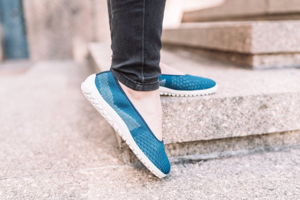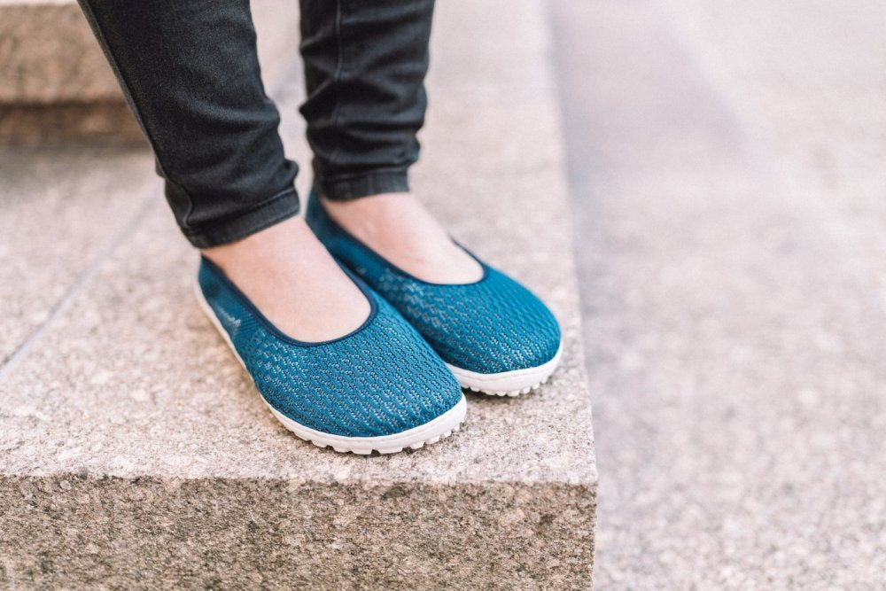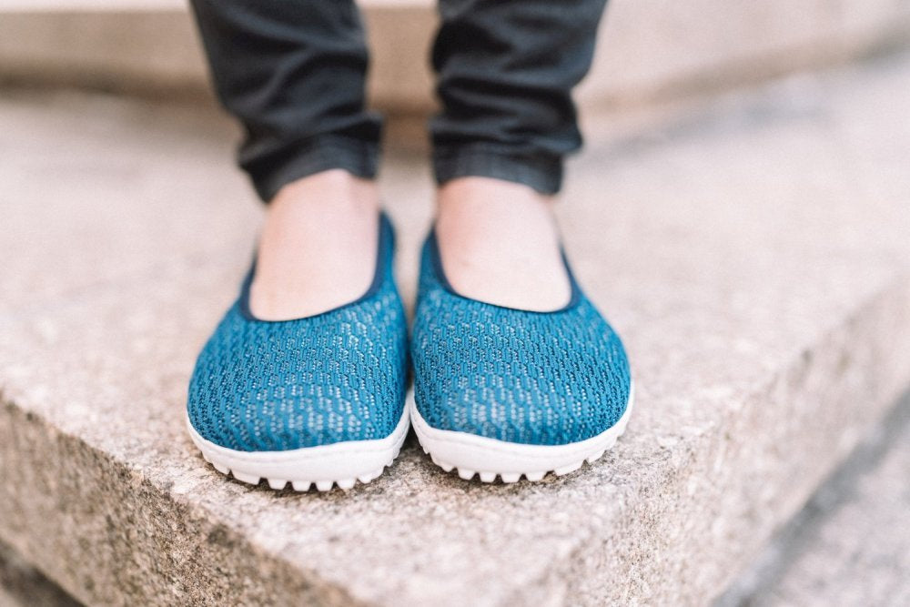 SUQAR Mare ist unser blauer Ballerina aus Baumwoll-Strickgewebe, der luftiger nicht sein könnte. Dieser Barfußschuh wird mit seinem Komfort und seinem femininen Design garantiert Dein liebster Begleiter durch die warmen Tage des Jahres.