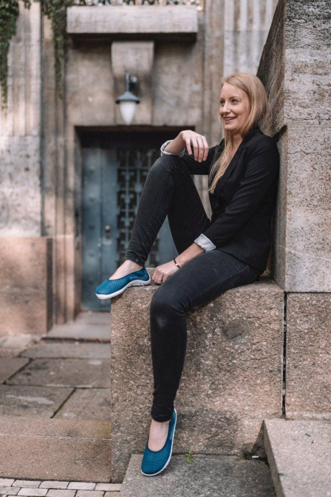Die weiße ZAQQ-Sneakersohle, die per Hand an das Strickgewebe genäht wurde, puffert jeden Schritt weich ab und ist trotzdem superdünn und flexibel, um Dir das entsprechende Barfußgefühl zu geben. Mit SUQAR wird jeder Spaziergang zum reinen Vergnügen. Reinschlüpfen, loslaufen und nie wieder ausziehen wollen, dieser Ballerina ist einfach megabequem. Und weil er so bequem ist, kannst Du ihn auch als Hausschuh tragen und fröhlich durch die eigenen vier Wände laufen.