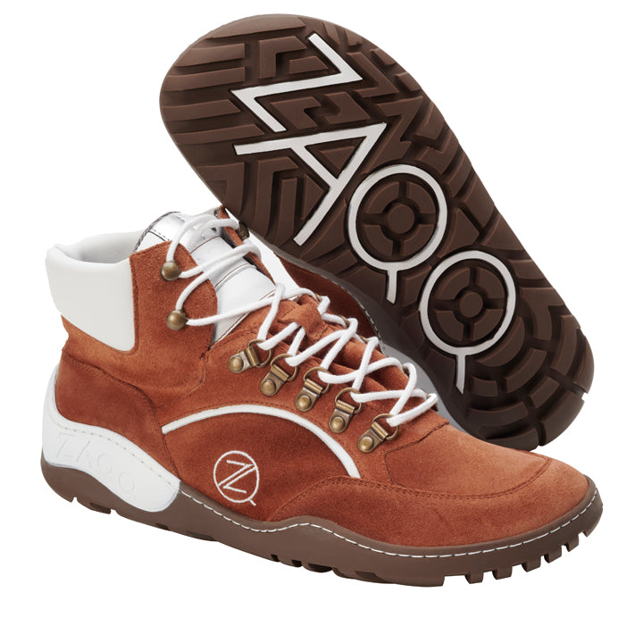 Als Obermaterial verwenden wir hochwertiges Veloursleder in einem warmen cognacfarbenen Ton und geben dem Barfußschuh mit den weißen Nappaledereinsätzen und Schnürsenkeln einen ultramodernen Look. Von innen verwöhnt Dich unsere anschmiegsame ZAQQ Membran mit höchstem Tragekomfort. Mit ihrer hohen Atmungsaktivität sorgt sie für ein angenehmes Fußklima und ist gleichzeitig zu 100% wasserdicht.