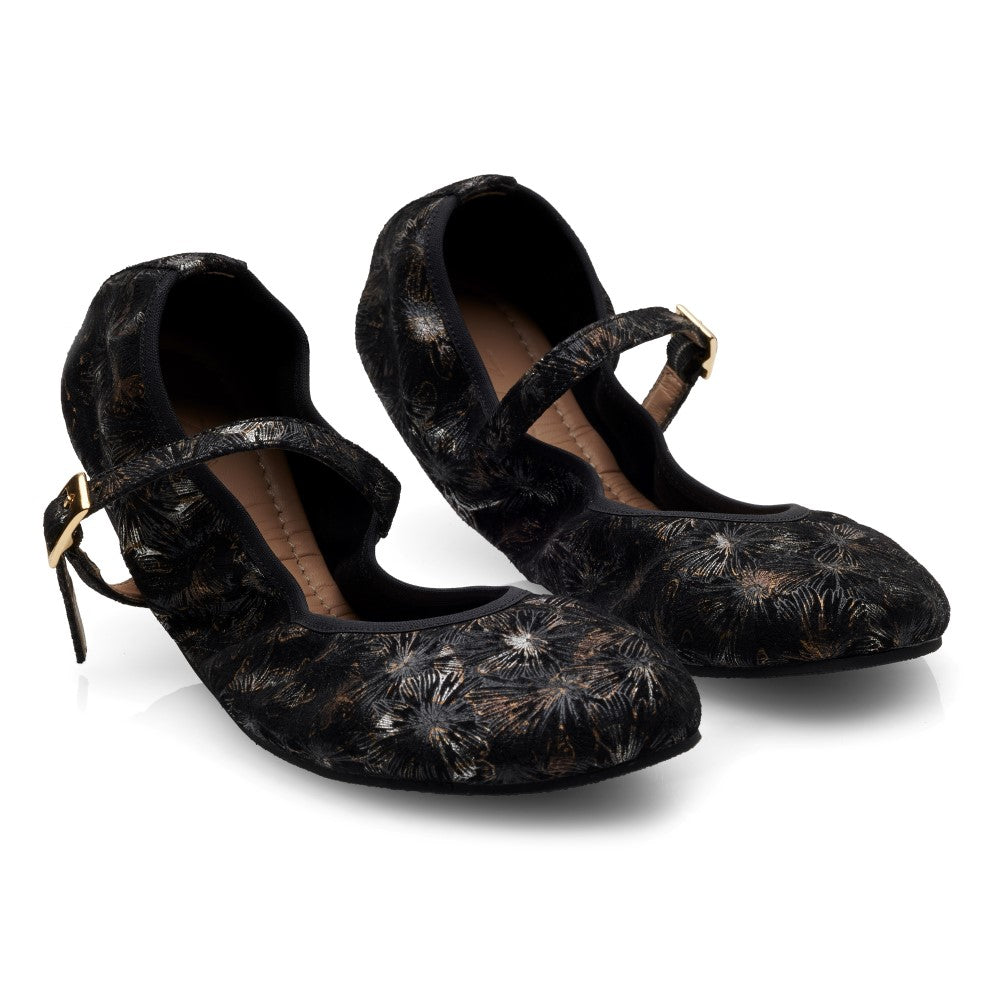 TWIST Ennis ist ein wahres Kunstwerk! Die zarte Blumenmusterung, das Wechselspiel aus den Farbnuancen Silberweiß und Bronze und die filigrane, goldene Schleife verleihen dem Ballerina und damit auch Deinem Look ein hohes Maß an Eleganz, Dramatik und Sinnlichkeit.