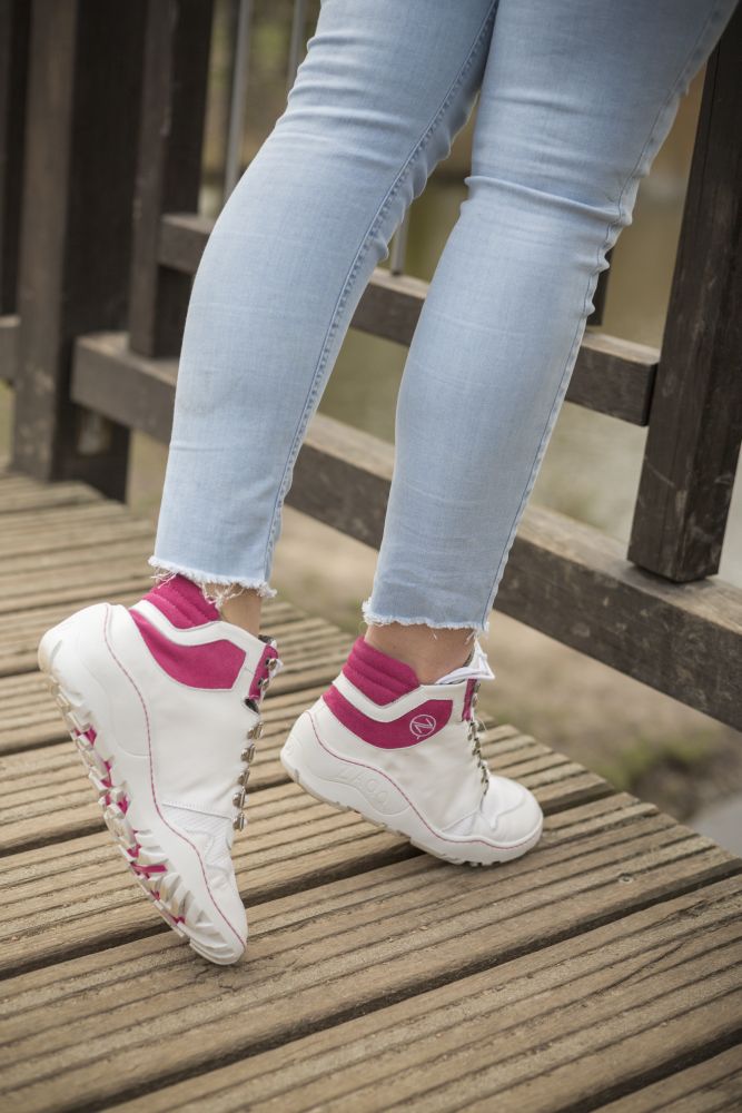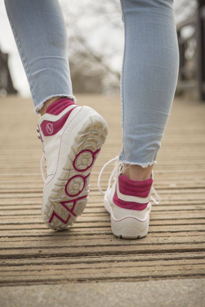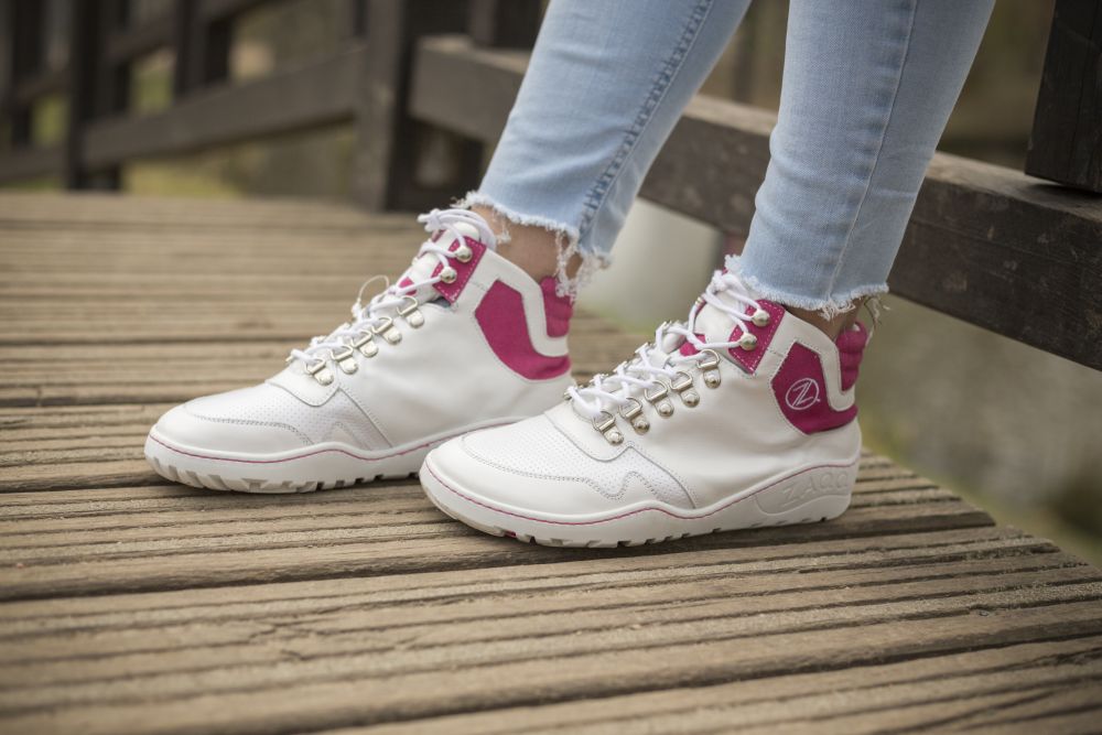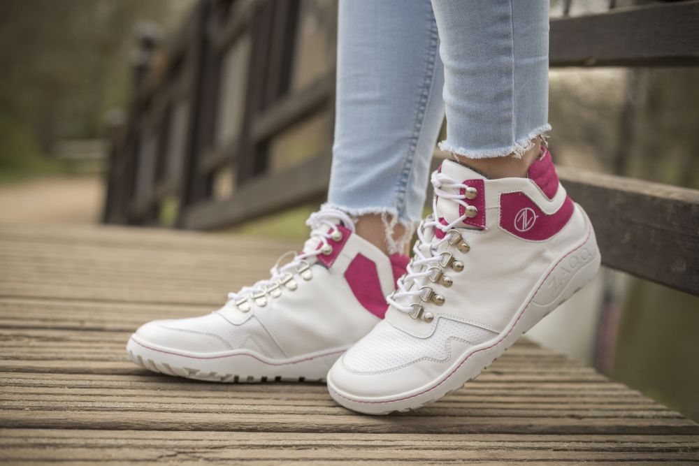 Für diesen Barfußschuh verwenden wir weißes Nappaleder, welches im vorderen Bereich eine perforierte Struktur aufweist. Die pinken Einsätze geben unserem VAQATION die sportlich-feminine Ausstrahlung. Von innen überzeugt der Outdoorschuh mit unserer besonders atmungsaktiven und wasserdichten ZAQQ Membran. Somit kannst Du Deinen neuen VAQATION auch bei Regen problemlos tragen.